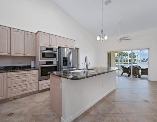 Welcome to your dream waterfront oasis! Nestled in the exclusive Punta Gorda Isles, a deed-restricted community, this meticulously customdesigned home embodies luxury and sophistication. Every detail has been thoughtfully curated, seamlessly blending high-end finishes both inside and out. Spanning 2,145 sq ft of exquisite living space, this stunning residence features three spacious bedrooms, three luxurious baths, an executive home office, and a two-car garage. The expansive floor plan boasts volume ceilings, elegant tray ceilings, and pristine tile flooring throughout. The gourmet kitchen is a chef’s delight, offering stone countertops, top-of-the-line stainless steel appliances, an expansive breakfast bar, a pantry, and abundant cabinetry with soft-close drawers. The separate dining area overlooks the serene lanai, while the great room offers breathtaking waterfront views. The private primary suite is a retreat in itself, featuring an en suite bath with a custom-tiled walk-in Roman shower, dual vanities, and a split floor plan that ensures guests enjoy their own private retreat. A large utility room with a prep sink and additional cabinetry provides ample storage. Step outside to your screened lanai, where a heated saltwater pool and spa await, set on a paver deck that transforms the backyard into a private paradise. With 76 feet of waterfront, a concrete seawall, a 45-foot concrete boat dock, and a 10,000-pound boat lift, world-class boating and fishing are just steps away. Beyond your luxurious haven, Punta Gorda’s vibrant cultural scene beckons, offering dining, shops, golf, tennis, pickleball, waterfront parks, resorts, and more. Whether you’re relaxing by the pool, setting sail, or entertaining family and friends, this home offers the quintessential Florida waterfront lifestyle you’ve been dreaming of.