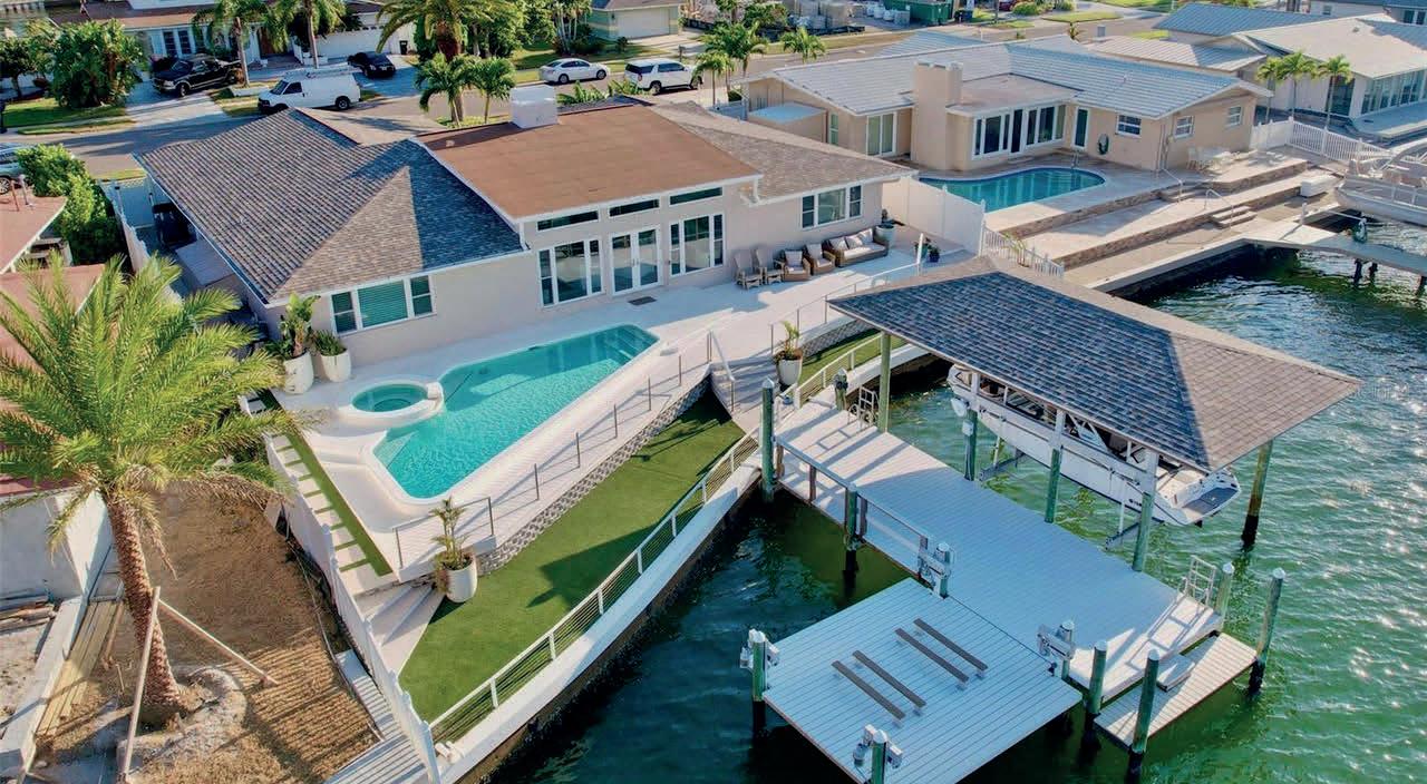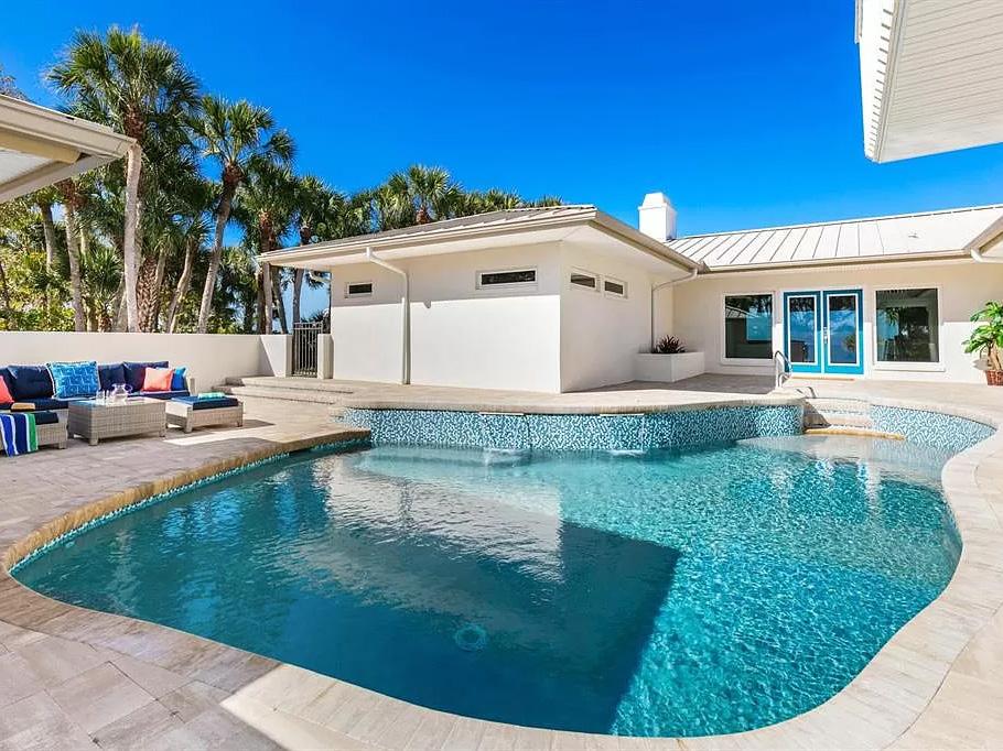 Discover this direct Gulf access home with a unique and inspiring courtyard design. This stunning masterpiece of design offers 3 bedrooms, 3.5 baths, plus a den/office, bar lounge & theatre.