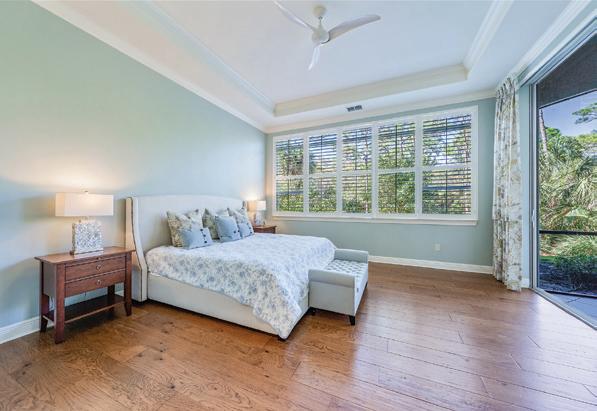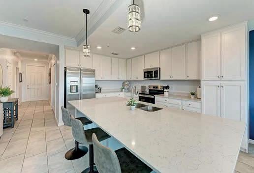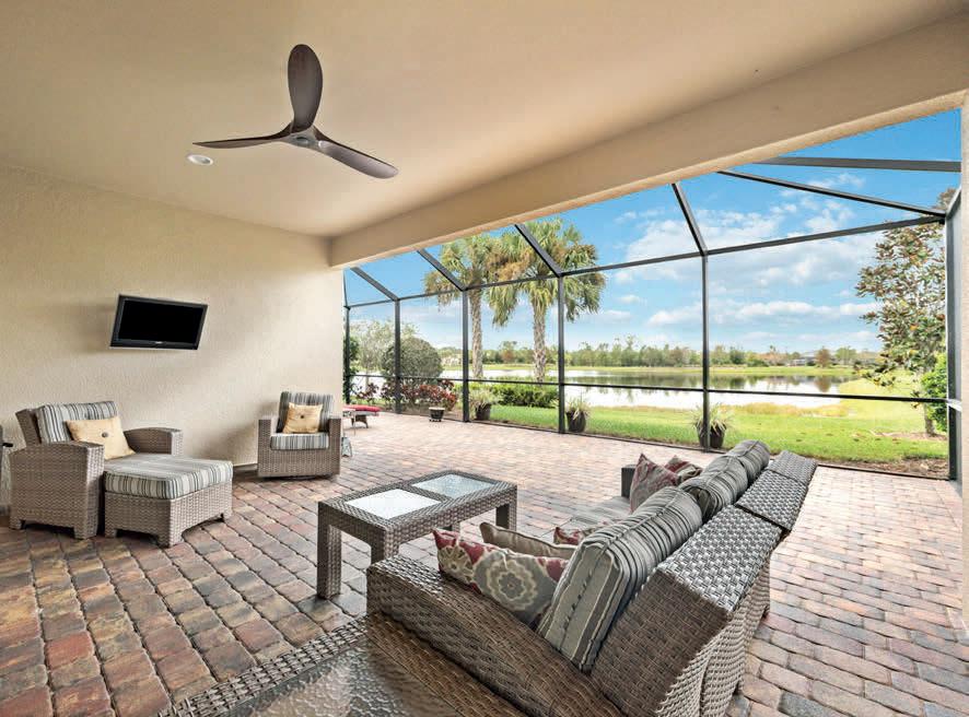 The simple answer is NEVER! This model, thought of as one of the most desired floorplans, is the 2nd largest home in the entire development with four (4) spacious bedrooms-each with private ensuite baths. The great room spans nearly 40’ across the rear of the home with double sets of wallto-wall sliders. The long lake views open to the pool, spa, and outdoor kitchen. There are custom shades throughout that include plantation shutters and Storm Smart roll down lanai shades for privacy, protection from storms, afternoon suns, and cool winter evenings. The owner brought in a master craftsman to finish out the recessed ceilings and has built out all the bedroom closets with custom organizers. It is a short walk to the award winning 45,000 sq ft clubhouse that includes all the amenities and activities you could ever want in a 55+ executive community. From the premium etched glass French door entry through to the pool oasis with expansive picture window pool cage, you will instantly know this is the home you have waited for. Call and see why The Napa has never before become available. You won’t want to leave either!