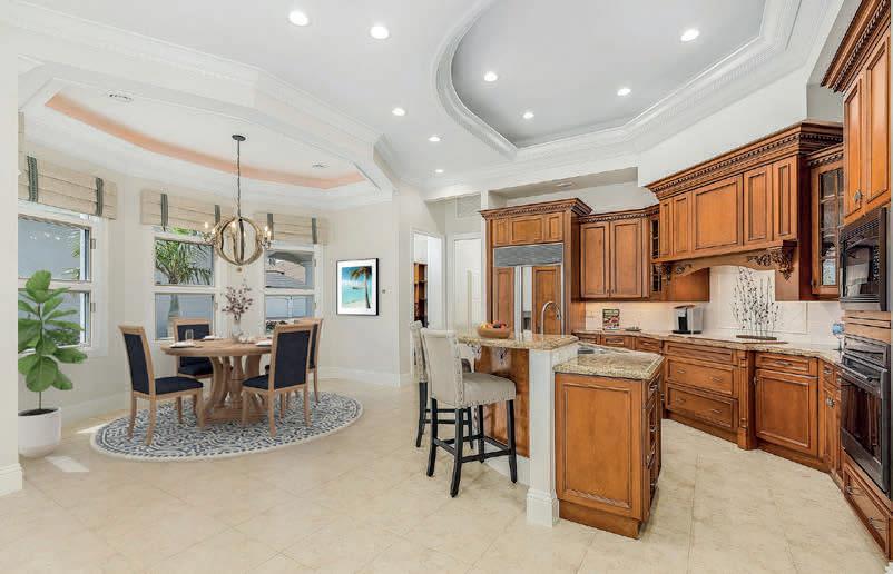 4 BEDS | 3 FULL, 1 HALF BATH | 3,143 SQ FT | $1,989,800 They call it the Napoli Grande because it is all that and more. Positioned on one of the largest lake lots with one of the longest lake views in Vista WildBlue, this Estate level stunner boasts 128’ of frontage on the boatable 225 acres Lake Vista, and offers added privacy thanks to the preserve fronting it. Upon entering the foyer, your eyes will be instantly drawn through the oversized Great room with soaring 11’ coffered ceilings to the extra-large custom Artesian pool and spa lakefront oasis that includes an outdoor gas kitchen. Take in the all picture-window pool cage that frames the extra- long and wide lake views. There are 4 full bedrooms and 3.5 baths in this spacious 3,143 sq ft beauty that includes a bonus game/media room. The upgraded baths have frameless glass enclosures to go along with tile and engineered wood floors. Extensive custom ceiling and wall decorative moldings are some of the luxury touches in this looker. The kitchen has upgraded countertops and cabinets, along with stainless steel appliances and marble backsplash. It is being offered tastefully furnished with all the lighting upgrades, window and plantations treatments, and so much more. It is truly “GRANDE”.