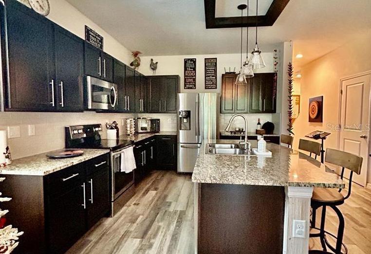 Introducing our BRAND NEW Trevi Floor plan, a masterpiece of modern living! Nestled in the popular Lorraine Lakes at Lakewood Ranch, this contemporary 4-bedroom, 3-bathroom home is ready for you to move in, recently completed in October 2023. The grand foyer welcomes you with volume ceilings. Immerse yourself in the desirable tile plank floors that grace all the main living areas and bathrooms. The heart of this home is its open-concept design, seamlessly