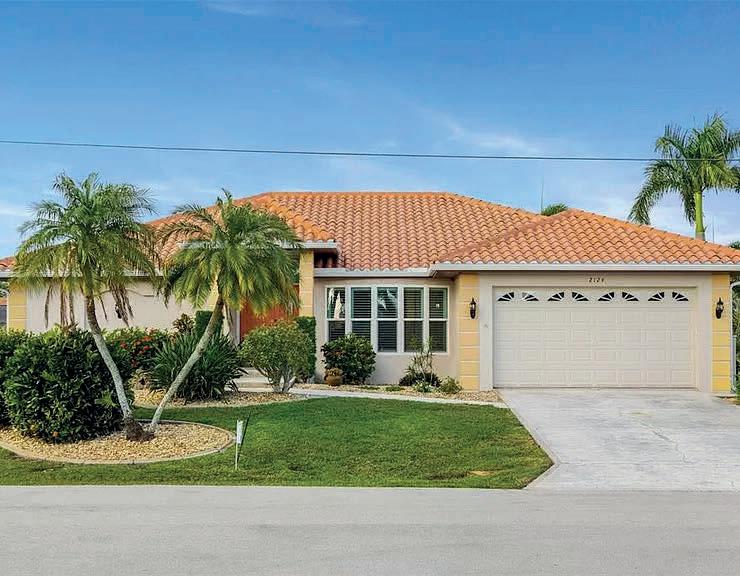 Reduced Price! Stunning waterfront pool home in PGI! Deep water, no bridges to Gulf, new tile roof! This 3 beds/ 2 baths home in a sought-after community epitomizes luxury living. With 2,281 sq ft, the open layout seamlessly connects kitchen, family, and living rooms. Wood-like tile flooring throughout for easy maintenance. Modern kitchen features quartz counters, granite sink, Thomasville cabinetry, and GE Profile appliances. Primary bedroom with adjacent flex space, exquisite bathroom with dual sinks and oversized walk-in shower. Split floor plan for guest privacy. Lanai with brick pavers and a pool overlooking saltwater canal leading to the Gulf.
