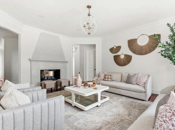 Elegance on Eglington | Features include a private, tree-lined backyard, soaring ceilings with wooden beams in the Great Room, two fireplaces, formal Dining room, and Den, Chef’s Kitchen, media room with wet bar, built-in wine fridges, pool table, two primary suites, Friend’s entrance and coffee bar, all saturated in an abundance of natural light. The home offers two bedrooms on the main level, upgraded lighting, additional storage, covered front porch and a covered back patio, threecar garage, multiple work-from-home spaces, full laundry room and a truly functional floor plan. Nestled away in Foxen Canyon, surrounded by nature, while minutes from shopping, schools + interstate access. Livable Luxury.