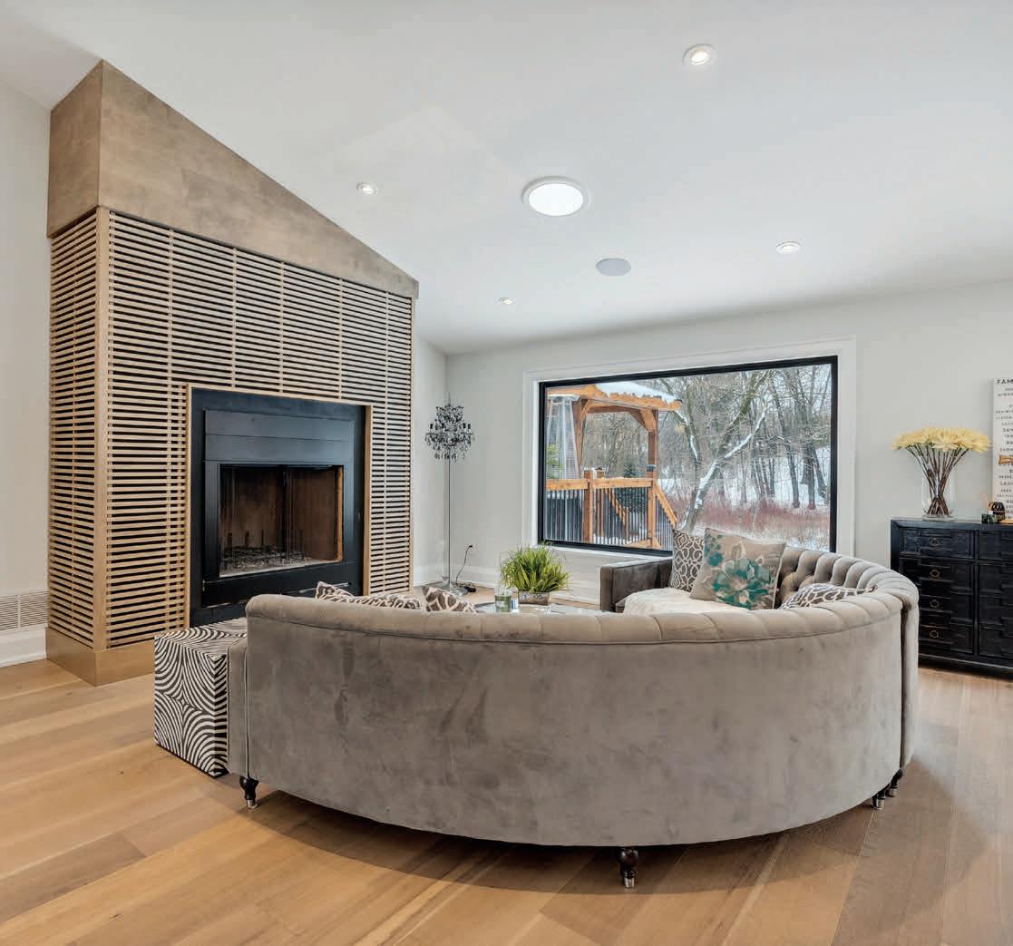 4 BEDS | 3 BATHS | 2,324 SQ FT. Live your dream of raising your family in the country, with just a short stroll into the bustling hub of Binbrook. Magazine-worthy sophistication - words to describe this beautifully appointed home. You’ll discover a completely and thoughtfully remodelled 4 bedroom home to meet your growing family’s need for fresh air and sunshine, while not sacrificing upscale creature comforts. No expense was spared, and what’s behind the walls is almost more impressive (consult with your realtor for full details). Gather around the massive 10’/50 sq.ft island, under the soaring vaulted ceilings with natural light pouring through the skylights. Enjoy the warmth and ambience created by the realistic looking double sided gas fireplace, with mantels custom made to match the white oak flooring. The centre of your home features a large open concept main floor that tastefully showcases its sleek modern kitchen (gas range, SS appliances), more than ample prep room and storage, and the not-to-be-missed beverage centre and coffee bar. Entertainers take note of the various spaces for guests to gather, inside & out - while still feeling connected through great flow open concept design. Large dining space, cosy reading nook by the fire or lounge in the sunroom overlooking the yard, the choice is yours. Walk-out via 1 of 3 accesses to the ~800sq.ft. composite deck, with wood accenting. Imagine retiring to your primary bedroom with contemporary ensuite (glass walk-in shower and double sinks).