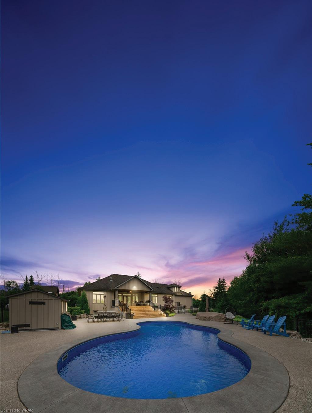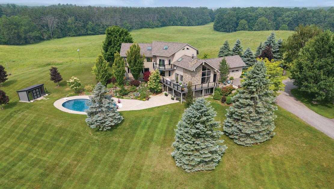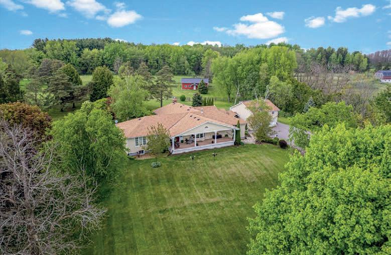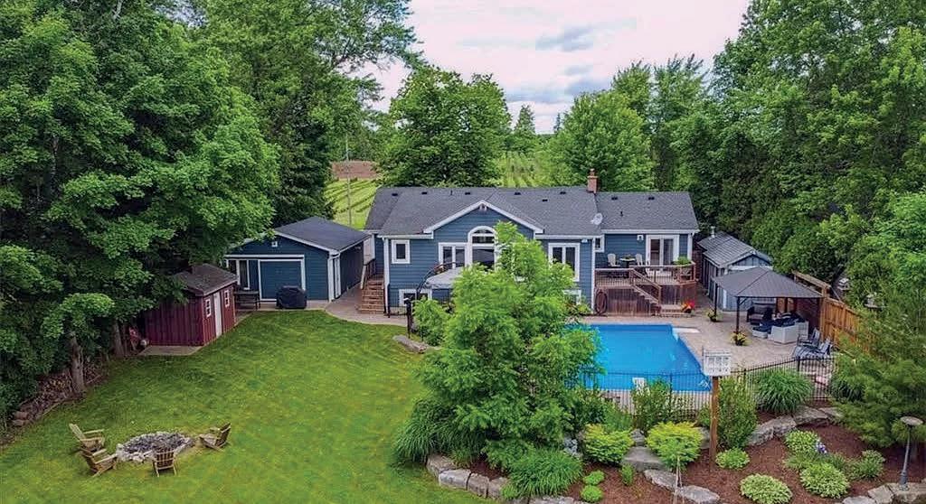 Welcome to country living in rural Erin! This custom Valhalla bungalow offers 3+1 bedrooms and 3 bathrooms set on nearly an acre, with woods behind and to one side and scenic farm fields across. A detached oversized garage, with power and room for up to 4 cars, welcomes you from the circular paved driveway with additional parking for 5. As you step inside, the natural warmth of wood graces the main floor, complemented by vaulted cedar ceilings, glulam beams and ample windows, ensuring lots of natural light, comfort and style throughout. The heart of this home is the eat-in kitchen, featuring elegant oak cabinetry, a spacious pantry, a sit-up breakfast bar, and black stainless-steel appliances. Walk-outs to the generous deck are perfect for morning coffee or al fresco dining amidst the serene countryside. The primary bedroom suite is a true sanctuary, offering a sitting area, walk-in closet, 4-piece semi-ensuite, and a private wraparound balcony providing a peaceful spot to unwind. The walkout basement features a large recreation room, a cozy media room with a propane fireplace, and walkout to a screened in room. This versatile space, with a 4th bedroom and 3-piece bathroom, provides additional living quarters and has potential for an in-law suite. Every inch of this home speaks of quality and attention to detail - this bungalow was built to stand the test of time! Visit www.lisahartsink.com for price and listing details.