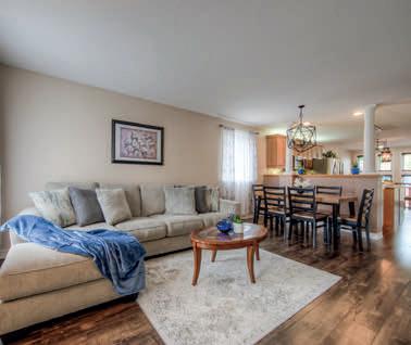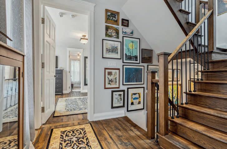 covered front porch and double concrete driveway. The home features 2,805 sq. ft. of living space plus an additional 1,470 sq. ft. in the fully finished lower level. The main floor features 9’ ceilings and hardwood floors and has been thoughtfully updated with a beautiful main floor office w/ barn style doors for the ultimate work from home solution. The eat-in kitchen offers plenty of space for preparing and enjoying family meals together. The family room with gas fireplace and formal living room are perfect for relaxing or entertaining. The 2nd floor has a spacious primary
