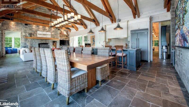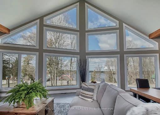 This newly built lake home on Clear Lake is a testament to luxury and craftsmanship. With 6,100 sq ft of living space, this property offers both grandeur and comfort, set against the backdrop of breathtaking lake views. A grand foyer and great room with 20 ft ceilings and exposed timber beams creates a dramatic and inviting space as soon as you enter the home. Exquisite custom cabinetry and high end fixtures are found throughout, including an incredible chef’s kitchen with Wolf and Sub-Zero appliances. An elegant covered porch with wood burning fireplace and outdoor kitchen are found just off the kitchen offering the best of indoor/outdoor living. Four bedrooms and 5 bathrooms in main house, including a second floor primary retreat featuring ensuite, laundry, spacious walk in closet, den and office. The property includes a two-car garage and a detached three-car garage with a storage loft, offering plenty of space for vehicles and additional storage needs. An 1,100 sq ft fully winterized two-story boathouse with two more bedrooms provides a charming and private retreat right on the water. Enjoy deep swimming off the dock and plenty of entertaining space at the water’s edge. Immaculate landscaping enhances the natural beauty of the property, which backs onto a conservation area with walking trails. Whether you are hosting guests in the expansive great room, enjoying the tranquility of the lake, or taking advantage of the many amenities Stoney Lake has to offer, this property promises a lifestyle of unparalleled comfort and style.