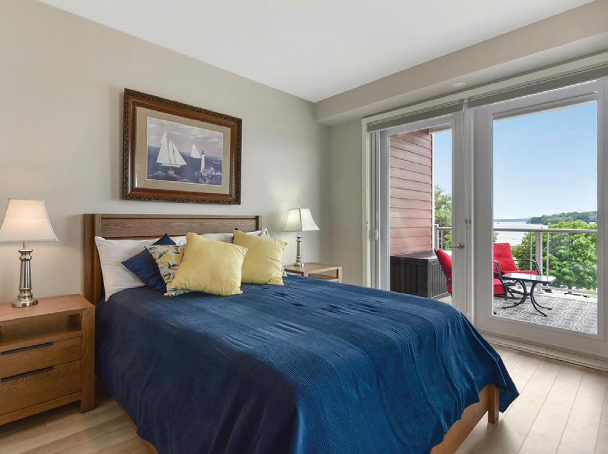 Prime south west corner condo with a panoramic view of the St. Lawrence River, Gananoque Islands, municipal harbour, and Joel Stone Park with it’s waterfront trails, sand beach, bandshell, splash pad and playground. The open concept great room is highlighted by the pristine upgraded white kitchen cabinetry and huge island with granite countertops and breakfast bar stools. The high end appliances are included. Hinged patio doors (with retractable screens) lead out to the generous balcony with a gas hookup with the barbeque included. From the primary bedroom, walkthrough double closets lead to the appealing ensuite bath with it’s seated walkin-shower, in floor heating, and even a passthrough to the laundry/utility room. The stacked washer/dryer is included as well as the tankless hot water system. Secured and heated underground parking. The layout design specifically accommodates mobility issues and provides an opportunity to relax and enjoy your leisure time in a great community.