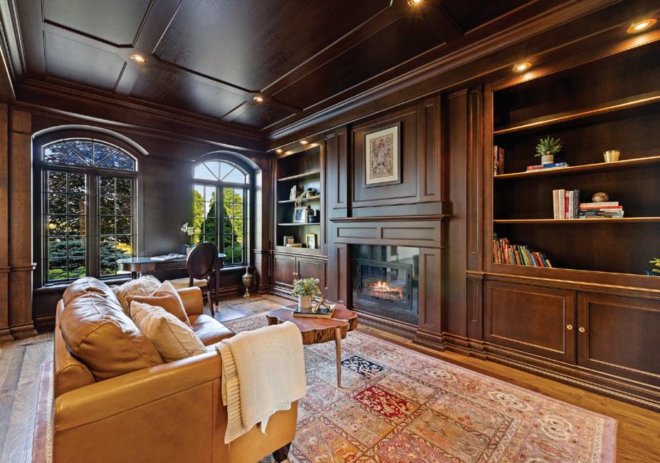 The gourmet kitchen boasts a double oven, custom built-ins, floor-to-ceiling pantries, Wolf gas stove and an oversized eat-in island that opens to a sunlit family room. Enjoy mornings on your private double walkout porch overlooking the river. The personal library and office offer stunning river views.