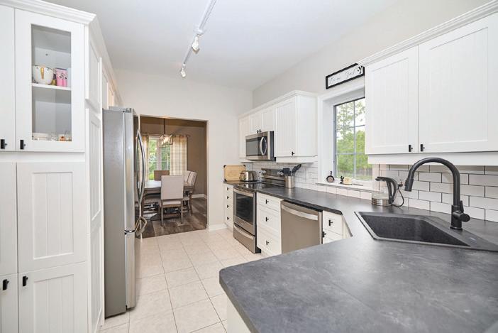 Discover your perfect getaway at this beautiful riverfront property with 100 ft of calm water frontage. Enjoy the new 23x29 ft wired garage built on a concrete slab with 3 R20 doors, adding both function and style to this exceptional property. Inside the home, you will notice all the loving upgrades and modernized features. The main floor has beautiful distressed knotty pine floors and a modern, spacious kitchen featuring quartz countertops, a gas cooktop, and a stylish porcelain backsplash. Off the kitchen, enjoy the cozy living room with a new gas fireplace, which flows into the dining area, making it perfect for relaxing and entertaining. The main floor powder room and laundry add extra convenience. Brand new 9’ patio doors, all new windows, a steel roof, and PEX plumbing (2023) complement the list of upgrades to the home. Upstairs, the primary bedroom has a large walk-in closet leading to a luxurious 5-piece ensuite. The lower level has vinyl plank flooring, a second bedroom, and another bathroom—great for guests or family. Outside, the star of the show is the spacious and private yard featuring a new 11x24 deck, flagstone walkways, and a cozy fire pit! End your day fishing off the dock or unwinding in the six-person hot tub. Escape to your own private paradise and indulge in the beauty of riverside living. Whether you’re unwinding on the deck, exploring the beautiful grounds, or venturing out for water activities, this property offers an opportunity to immerse yourself in the tranquility of nature while enjoying the comforts of modern luxury. What are you waiting for?