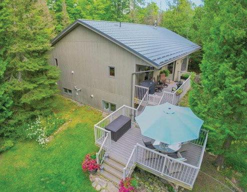 Welcome to the peace and serenity of Nameless Lake on Manitoulin Island. This custom-built home on 3.5 acres with 265’ frontage offers ultimate privacy and stunning west-facing sunsets over the springfed motorless lake. The property features walking trails, a hot tub, sauna, studio/bunkie, dock, and fire pit. It has low maintenance with a steel roof, central vac, composite decks, and perennial flower beds. The interior boasts a well-appointed kitchen with granite countertops, custom cabinetry, and a pantry, open to the dining area and great room with a propane fireplace and wall-mounted TV. The main level includes two bedrooms, the primary with an ensuite and walk-in closet, and a main floor laundry. The lower level features high ceilings, a sitting area, propane fireplace, two bedrooms, a bath, laundry, den/office, cold room, and kitchenette. An attached double garage completes this spectacular home. Call today for a private showing of this beautiful home and lifestyle.