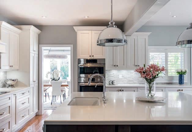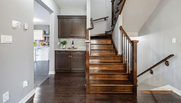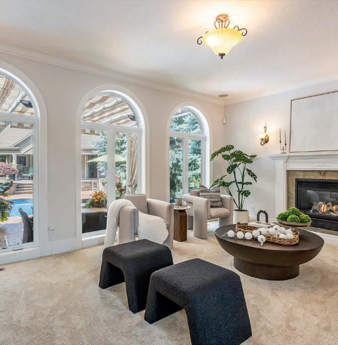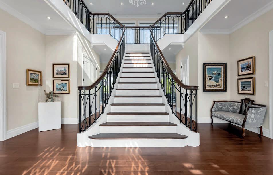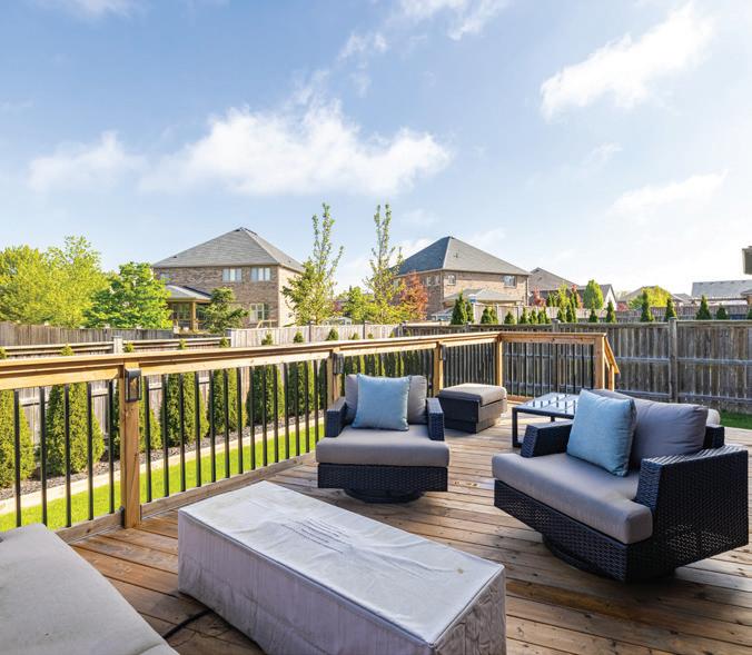 4 BEDS • 4 BATHS • $1,249,000 Welcome to this beautifully upgraded and spacious two-story home featuring 10’ ceilings, recessed lighting, granite countertops, California shutters, and 24x24 tiled marble flooring. The home theater is managed by a hub in the basement, and the entire house is cablefree. All wiring is hidden. All rooms have Sonos speakers installed in the ceiling, and the master bedroom has a balcony patio with external cameras. The basement has a walk-up exterior and nine-foot ceilings. Handy laundry/ mudroom located off the garage.