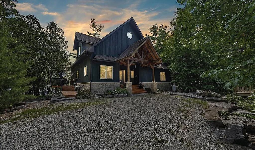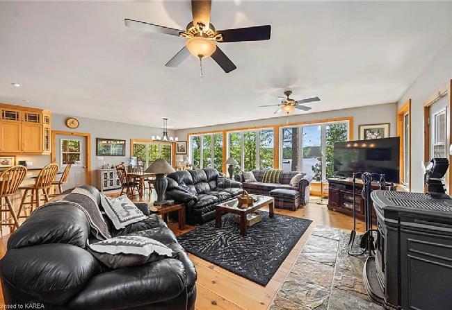 This year-round property, uniquely designed with sleeping for up to 16, exudes class! It’s situated on a 1.8 acre lot with over 200 ft of Canadian Shield shoreline, while the rear of the property backs onto the Trans Canada Trail. 3,500 sq. ft above grade with main floor an open concept design filled with natural sunlight plus in-floor heating. This is an amazing property!