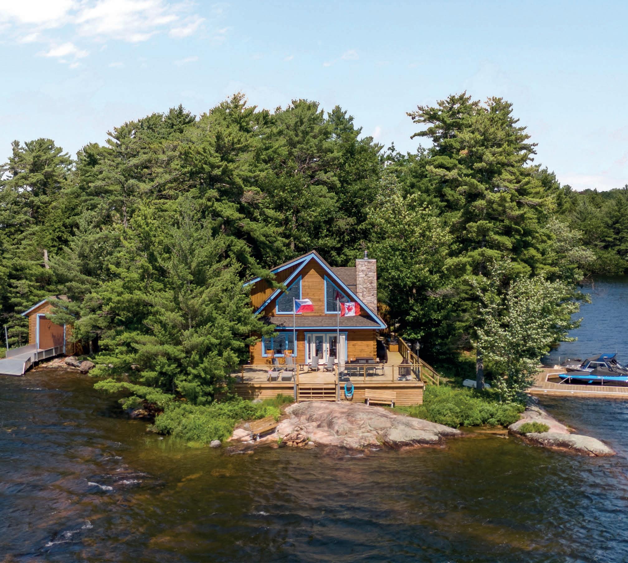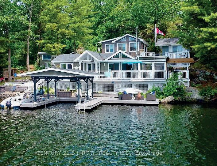PRIVATE ISLAND—Family Oasis awaits 2 hours from Toronto, 1.28 acres of private Island with all the sun exposures, only a 4-min boat ride from marina. Everything shows like brand new, main log cottage built by Colonial Concepts Log homes approximately 1,600 sq ft, 4 bedrooms with main floor master-en suite, 2.5 baths built in 2014. Large deck facing southwest with all day sun, cathedral ceilings, hardwood floors, beautiful kitchen with stainless steel appliances, wood burning stone fireplace, 2 slip dock for the boats and guest cottage (built 2023) is 672 sq ft with 2 beds and 3 piece bath, beautiful kitchen, stainless appliances, own laundry, stunning floors, cathedrals ceilings, large deck looking southwest and its own private dock. The island has a dry boat house for canoes, kayak’s etc and a shed for storage. The island is stunning with pathways around, sandy shore on one side, deep water for swimming around docks and all the sun and shade you would like. Its truly stunning and a must to see. Please view photos and drone film. https://listing.jacksonhousemedia.com/sites/pnzjggm/unbranded (35573855)