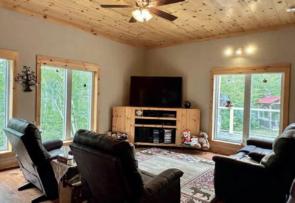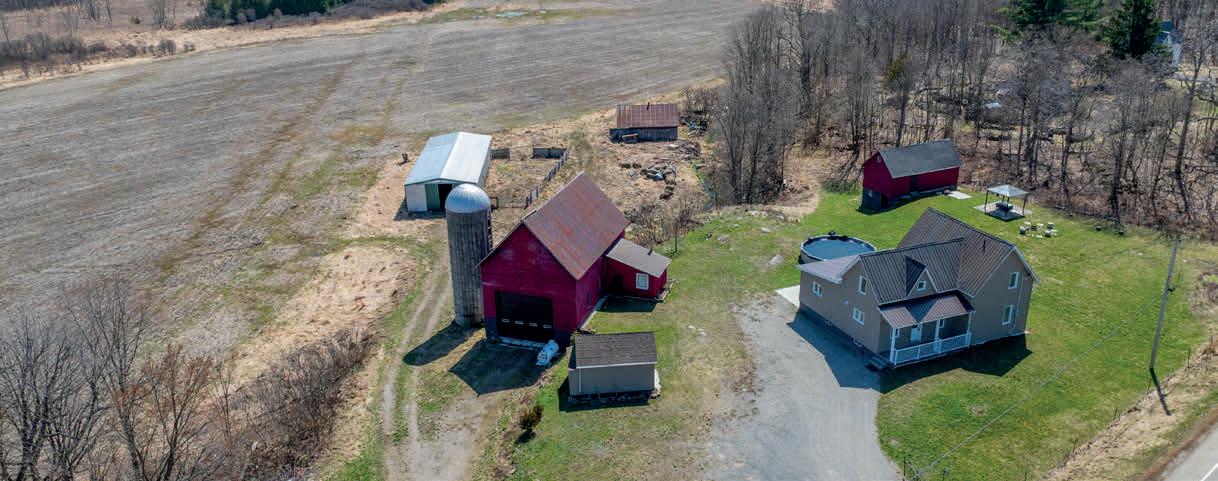 This working hay farm with 60 acres of land of which 30 acres are cleared for hay and has fenced in paddocks & pastures that is currently home to 5 horses plus room for many more, along with a 24’ x 60’ barn for the hay and a horse run in directly from the paddock. The beautiful 2 bedroom custom built home completely maintenance free exterior is complete with an attached drive thru side carport and an attached front carport directly at the front door. Fully open concept kitchen and living room with a vaulted pine finished ceilings over 10’ high, and patio doors, to a wrap around covered deck 10’ x 34’ that connects to the porch that’s 32’ x 6’ with both offering stunning views of the pastures and woods. Full basement that is easily finished with a rec-room, extra bedroom, laundry/utility room as well as ample storage room. Forced air propane gas heating as well as electric fireplaces one in the living room (excluded) and one in the rec room that is roughed-in for a wood