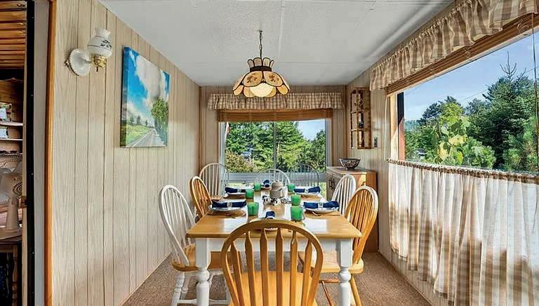 Retire to Freedom – and move to excellent, beautiful, mobile home park. 2 bedroom mobile on treed lot. Porch, paved double drive, paved road to door.