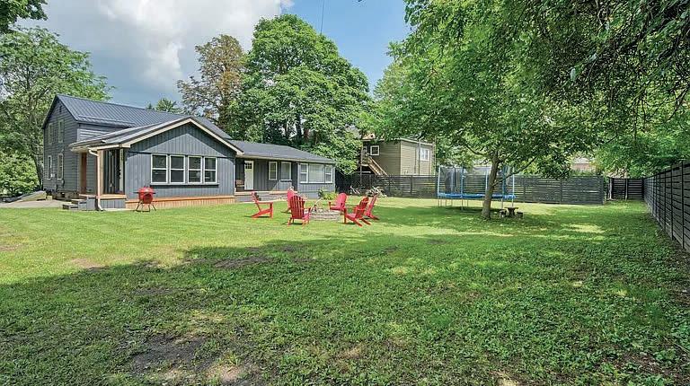 OFFERED AT $835,000 | 3 BEDS | 1 BATH. Just a block from Main St sits this 100+ year old beauty on an extra large corner lot with severance potential or a second home. There is a detached 1+ car garage and shed, a huge deck for entertaining and enjoying the sunny afternoon. A three season sun porch at the front of the house allows you to sit and visit with the neighbours as they pass by. On the main floor you will find large principal rooms with a very open and airy feeling for an older home. Main floor laundry, great sight lines from kitchen/dining room through to living room and sun porch. Large main floor office could be a main floor bedroom. Three large bedrooms upstairs with plenty of closet space! Come take a look! (id:38686).