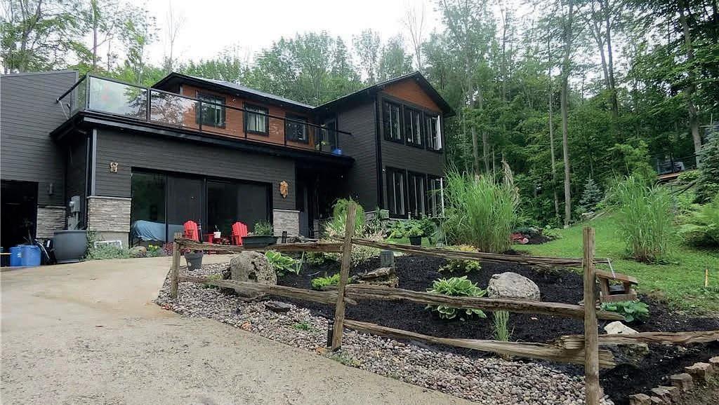 Welcome to 331 Russ Road—a property that seamlessly blends luxury with entrepreneurial possibilities. Nestled on a sprawling 52-acres in Grimsby, this home offers more than just sustainable features; it provides a canvas for diverse ventures. The property presents an expansive 10,000+ sq ft indoor arena, equipped with stalls and a tack room. It’s ready to be transformed to suit a myriad of business ventures. The outdoor paddocks and additional land dedicated to crops and forest offer multiple opportunities. The sustainable features of this home are remarkable. High R-value enviro spray insulation and geothermal system, minimizes environmental impact. However, the true centerpiece is the magnificent 25-foot double-sided masonry wood fireplace. Framed by authentic Ozark stone, this stunning feature extends from the basement to the top floor, creating a captivating focal point. Inside, you’ll find four spacious bedrooms, including a main floor master suite. Beautiful wood ceramic tiles from Italy and pet-friendly compressed bamboo flooring adorn the living spaces. The open-concept kitchen is a culinary delight, boasting artisan tile work and a large center island. Outside, take a dip in the 20x40-foot inground pool or relax under the gazebo. Whether you’re soaking up the sun or seeking shade, this serene retreat offers the perfect escape from the world. Don’t miss the opportunity to own this extraordinary property—a true blend of pastoral charm and modern luxury.