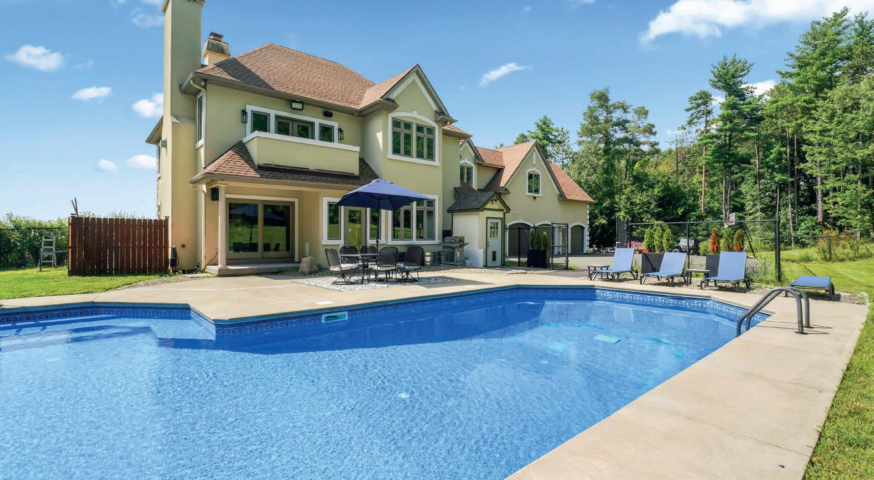 Imagine a place where luxury, design, and quality converge, nestled on nearly 5 private acres. Drive up the grand driveway and feel the anticipation build as you approach the stately cast iron doors. Inside, you are immediately in the heart of this home, where every corner tells a story of sophistication and timeless beauty. The chef’s kitchen includes custom cabinetry, top-of-the-line appliances, and a sprawling granite island. It sits alongside the sunken living room and dining area, creating a space for gathering, entertaining, and creating memories. Entertainment reaches new heights in the lavish home theater, making movie nights unforgettable. Step outside to your private paradise a heated saltwater pool glistens under the sun, complemented by a cozy cabana and a lush, manicured yard designed for relaxation and play. When solitude calls, retreat to the primary bedroom wing, a sanctuary of serene luxury. The spa-like en-suite features an oversized shower with multiple showerheads, inviting you to unwind in style. His and hers walk-in closets, opulent sleeping quarters, and a wet bar leading to a versatile private room perfect for an office or nursery complete this haven. Located in the heart of the Hudson Valley, just minutes from the New Hamburg Metro North station, this estate marries seclusion with convenience. Schedule your private tour today and step into a world of timeless elegance.