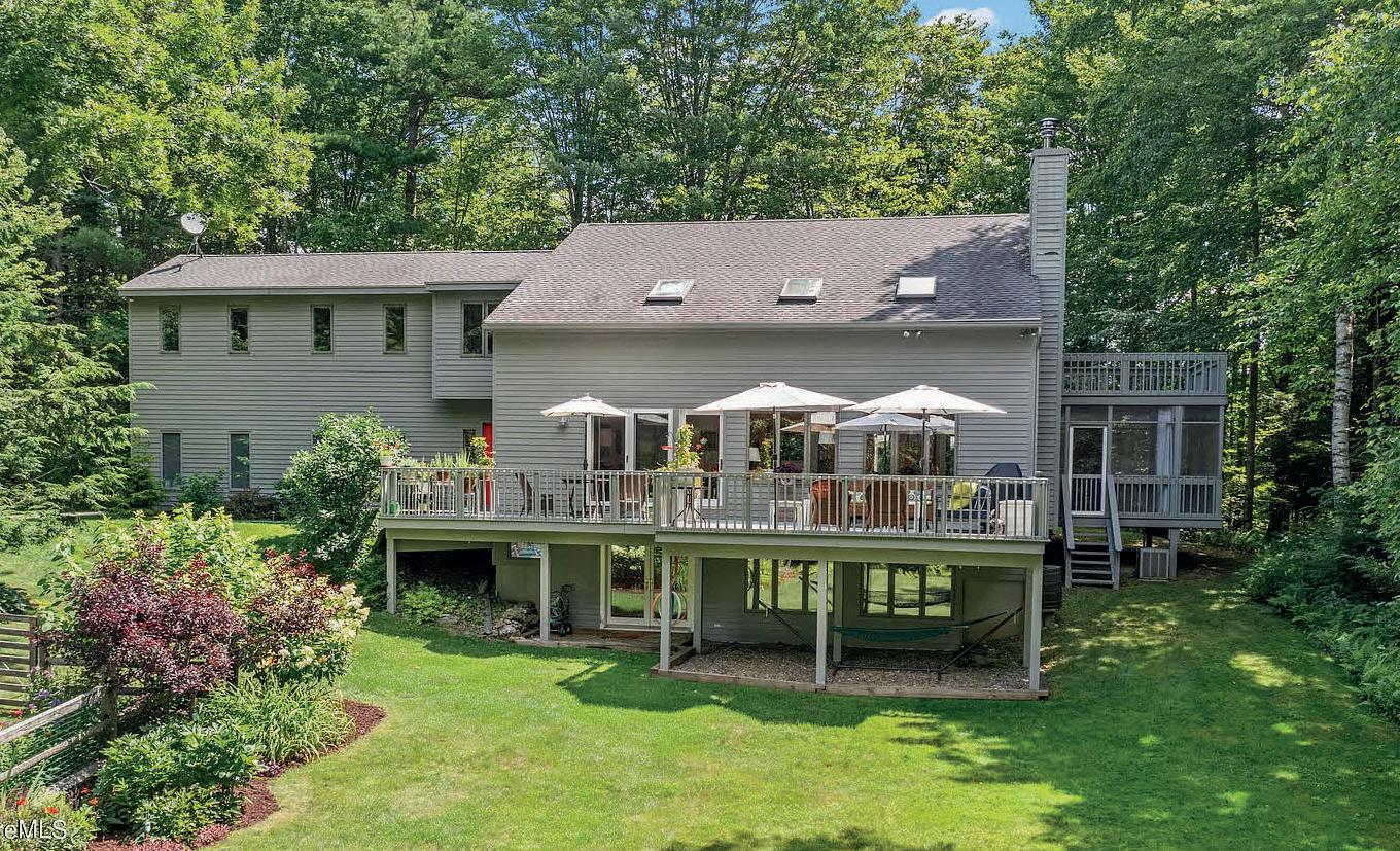 Set back on a private 36 acres, this enchanting property will impress you the moment you drive up into the woods, and lay eyes on the rustic yet charming home. Upon arrival, you will notice the gardens, stone patios, and large goldfish pond. The whimsical front door welcomes you into the perfect spot to hang your coat, remove those hiking boots, and come on in. The 2014 renovation is apparent throughout but especially in the open concept living room, dining area and spacious kitchen with soaring windows and thoughtfully chosen custom details including 100 year old beams, black walnut spiral stairs, a newer wood stove, custom cement countertops and white washed tung + groove ceilings. The main level also features a large family/game room, office, 3 season room, bedroom, laundry and 2 bathrooms. Both 2nd level bedrooms have their own set of stairs, balcony, and large ensuite, offering a unique layout and privacy. The primary bedroom and ensuite have just been renovated and includes a spa-like sauna and radiant floors. Custom touches continue throughout the home. Outside is a nature lover’s dream with both a fenced-in veggie and flower garden, perfectly placed hammocks, firepit, and open grassy areas. Also, on the property is an insulated 2 story barn with a metal roof and a brand new 900 sq ft garage with 12 ft ceilings, mini split, and wifi. This property truly has a little something for everyone and is located near all the soughtafter hiking/biking trails, farm to table restaurants, and craft breweries. Just down the road is kayak access and hiking trails along Louisa Pond.