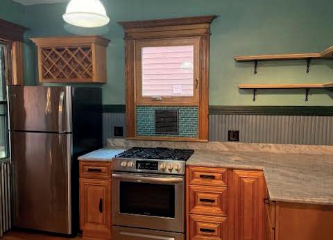 Don’t miss this extraordinary NOTA Queen Anne Victorian home, located in the very desirable Neighborhood of the Arts close to cafes, restaurants, shops and museums. The property borders Rochester’s East End and is minutes from the University of Rochester/Strong. This 5 bedrooms, 2 full bath home features a stunning front porch and entry hall, open floor plan, hardwood floors, and magnificent stained glass and original chestnut molding throughout. Other highlights include a new retro style kitchen with granite tops, new stainless appliances, 2 deco inspired full baths and a European style cafe side walkway. There is excellent parking adjacent to a huge park like yard with a brand new studio/garden shed. This home features a newer tear off roof, new furnace, new 200 amp electric, new sewer line and hot water tank. MLS # R1560926