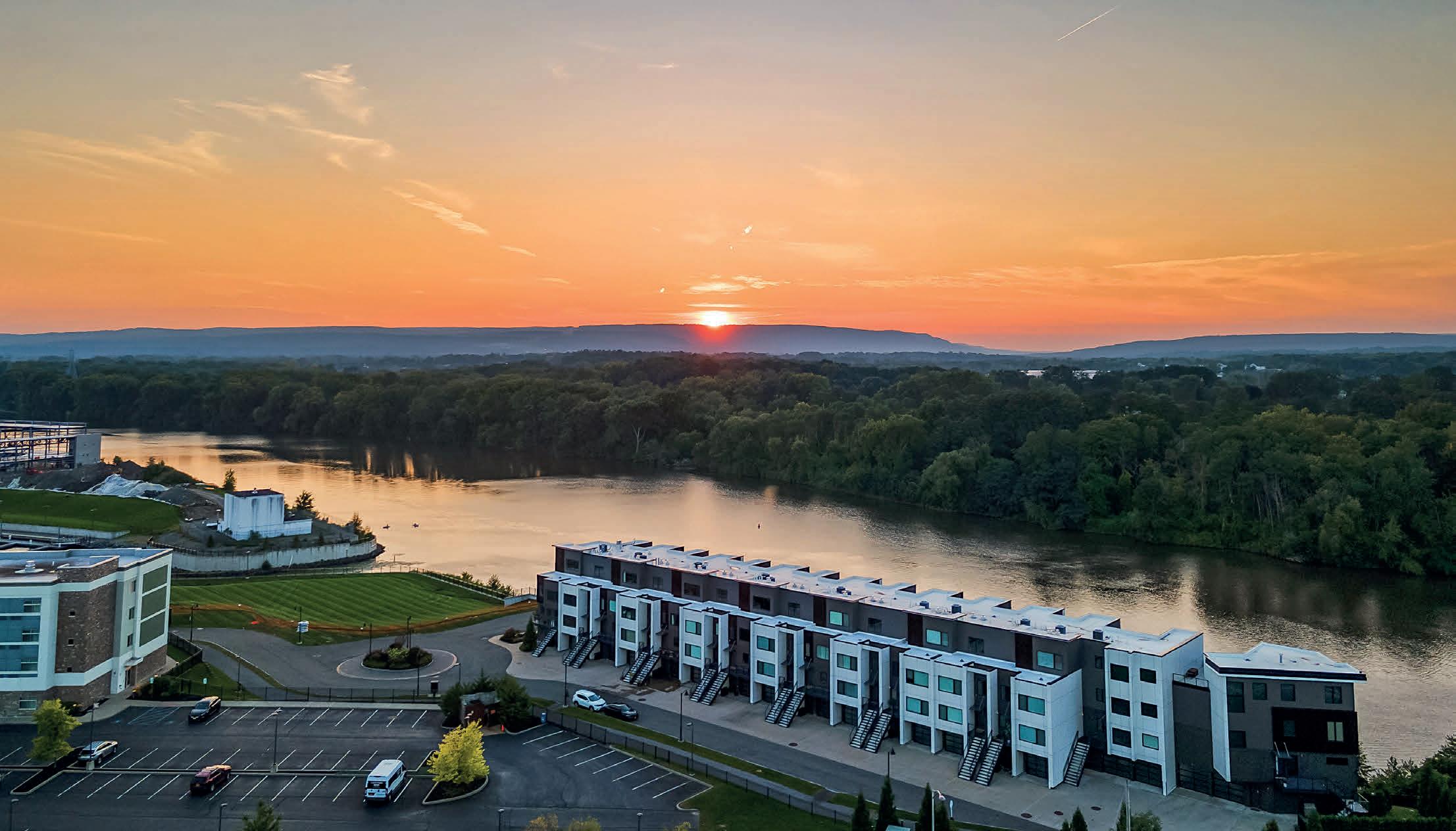 Experience the openness of modern design with the ease of maintenance free living on the Mohawk Harbor in downtown Schenectady! This floor plan offers an amazing master bedroom suite with walk in closets + private deck, spacious kitchen and family room with a private deck, hardwood floors throughout, cathedral ceilings on 3rd and 4th floor provide a haven for those who enjoy entertaining. The loft area has its own bar and deck. Home office/workshop at the ground level that offers two tandem garage spaces with storage. Elevator upgrade is included. These condominiums offer incredible amenities including pool access, on campus gym + common room at nearby River House Apartments. They also include accessibility to the Mohawk Harbor offering outdoor concerts, kayak + slip rentals, restaurants, and Rivers Casino all within walking distance, along with a connection to the Mohawk-Hudson bike path. Call now to schedule your showing!