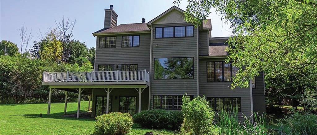 4 BEDS • 4 BATHS • 5,704 SQFT • $469,900 Explore this unique property, a converted barn that combines business potential with family living. The home features 4 bedrooms, 4 baths, 3 woodstoves, a kitchen with new stainless steel sink and countertops, wide plank floors, and barn siding in many rooms. The primary loft suite includes a sauna and private deck overlooking a large koi pond. The lower level, once a veterinary office, offers a reception area, exam rooms, a kennel room, storage rooms, a workshop, and more, all heated and plumbed, providing endless possibilities. Outside, find 13 acres with pastures, woods, walking trails, a creek, two garages, and a barn with stalls. 28 E. Genesee St., Skaneateles, NY 13152