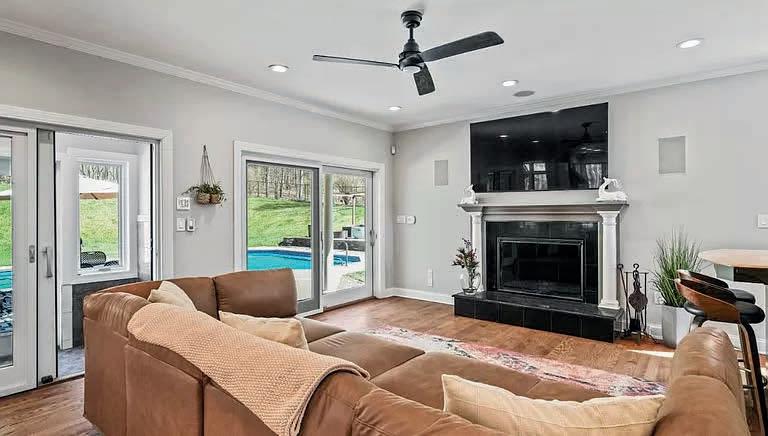 Experience Saratoga luxury in this stunning lakefront home with breathtaking sunset views over Saratoga Lake. Located just minutes from Saratoga Race Track and Saratoga National Golf Club, this 7-bedroom, 4-bath retreat offers high-end living with an open-concept kitchen, granite countertops, and elegant hardwood floors. The outdoor oasis features a saltwater pool, air-conditioned pool house, and a spacious finished walkout basement with entertainment rooms. Sold fully furnished and move-in ready, this home is perfect for relaxation or investment. Don’t miss this rare opportunity!