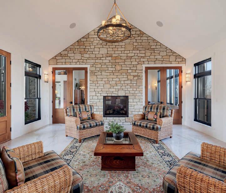 A chef inspired kitchen is the heart of this home. Custom, furniturelike cabinetry with stone counters, over the top professional grade appliances and walk in pantry make this space an entertainment dream. Thoughtfully designed with an adjoining casual dining space and 18’ fireplaced gathering room.