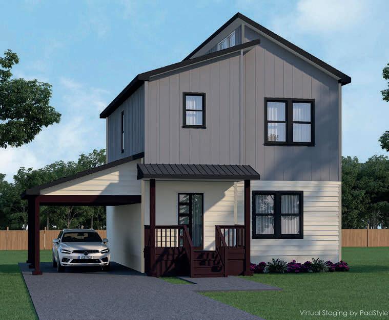 New construction 3-bedroom contemporary with a covered porch and carport, near downtown shops. Features an oversized living room, custom kitchen with quartz countertops, and a master bedroom with vaulted ceilings. Includes central A/C and a full unfinished basement. Municipal water/sewer.