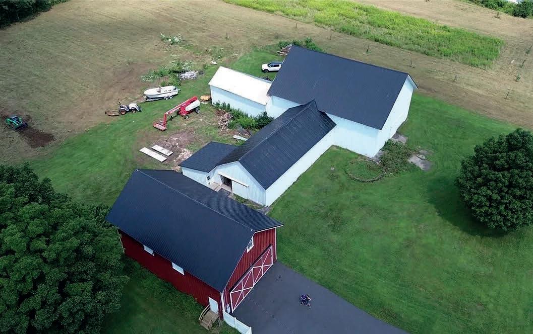 business have been granted permits. Annual taxes: $14,831.16 (Property: $9957.72; School: $4,873.44.) Commercial Access: Two driveways to property; parking lot (field behind Wood Shop where freight trucks loaded in/out); capacity of White Carriage House as many as 350 people when used for weddings/events. Property is directly on County Hwy 18 which is plowed during inclement weather allowing 24/7 easy access/egress for business vehicles year-round. Property is directly across from State Route 10, again easy transportation access. History: Original settler J. McLean was a copper magnate and building construction reflects the wealth: the grandeur of the White Carriage House, the stability of the Stone Building (originally, the family’s private train depot for tracks that now are used as the 21-mile Catskill Scenic Trail, some of which crosses through this property; owner has farm-right-ofway for cattle or trucks); the size of the rooms in the Main House, the post-and-beam construction of the Horse and Livestock Barn. And the stone wall that surrounds the majority of the property, one of the few in the area still intact, is a testament to the construction and care devoted to the estate.