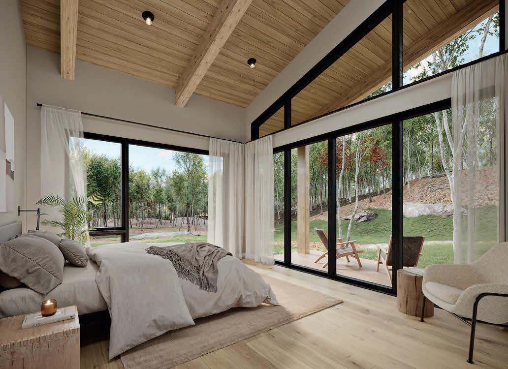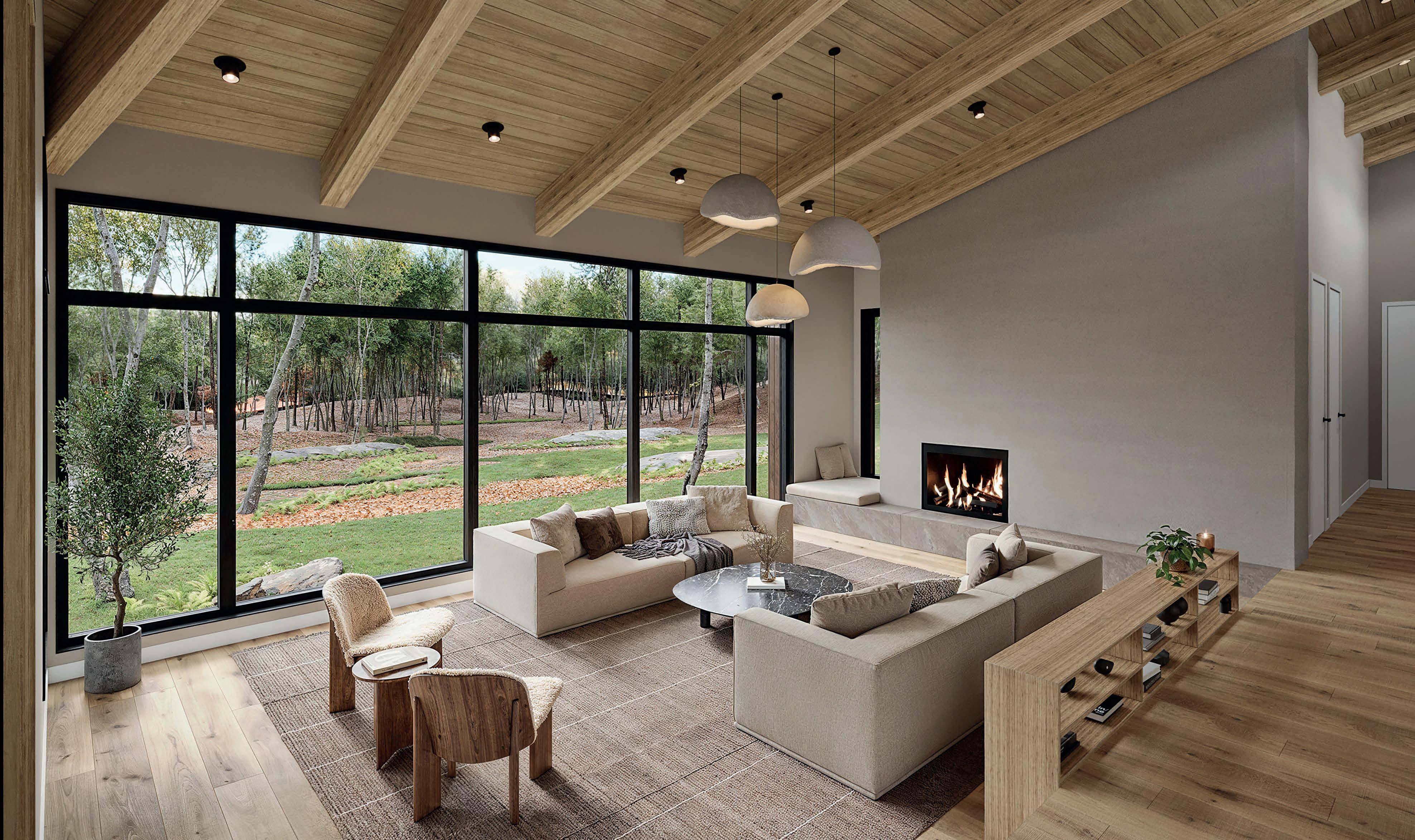 An Indoor-Outdoor lifestyle is perfectly incorporated through the four-season sitting room. An element offering a space to slow down with a cup of coffee, an evening cocktail, and a retreat perfect for the day's end. Walls of glass lead to a wrap-around deck surrounded by trees, presenting a great outdoor dining experience. Warm up by the covered porch with outdoor fireplace, the idyllic setting after a day of hiking or skiing!