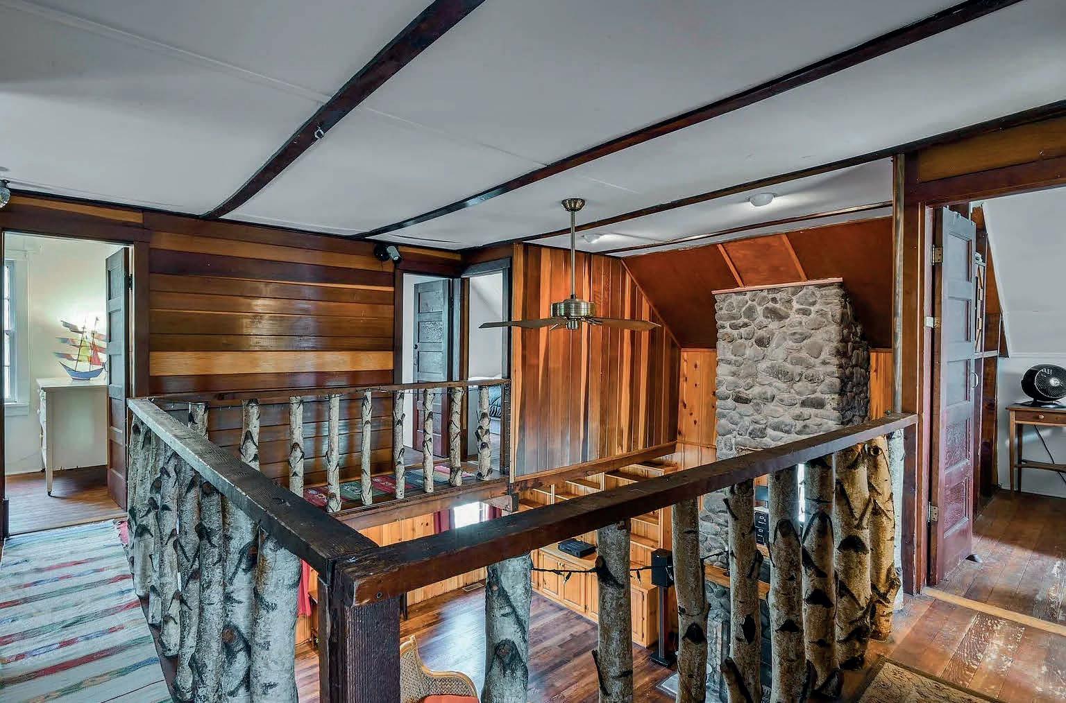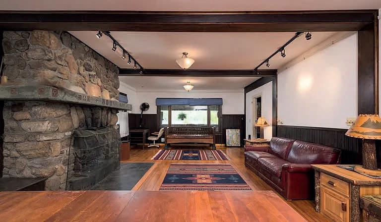 When you enter this warm, spacious, and private cabin, you’ll immediately exhale and relax. Stewarded by only two families since its construction in 1931, this home offers modern updates while retaining its original charm. The first floor features an open-concept layout with endless possibilities for customization. At the heart of the space is a stunning, double-height stone fireplace. Overlooking this central feature is a U-shaped mezzanine that houses all five bedrooms, along with a walk-in closet. The walls are pine, the floors and ceilings are fir, and the railings are crafted from white birch, adding to the home’s rustic elegance. Recent updates include a new roof, an updated kitchen, a custom 12-foot diameter fire pit, a deck in the yard for star gazing, a Generac back-up generator, and a fenced garden. The property also features an infrared sauna. Additional maintenance has been completed, with cleaned ducts and an emptied septic tank for your peace of mind. The home sits above the street on beautifully landscaped land, offering stunning, unobstructed views of the mountains from the front deck. The backyard overlooks a serene pond on the neighboring property. With the house situated strategically, the 1.6 acres feels expansive. The grounds have been carefully maintained, with dead trees removed and much of the brush cleared. An incredible mix of trees and flowers blooms every year, creating a beautiful, natural environment. Only one neighboring house is visible from the property, and the road is exceptionally quiet.