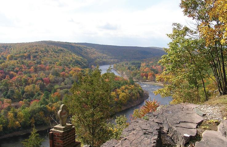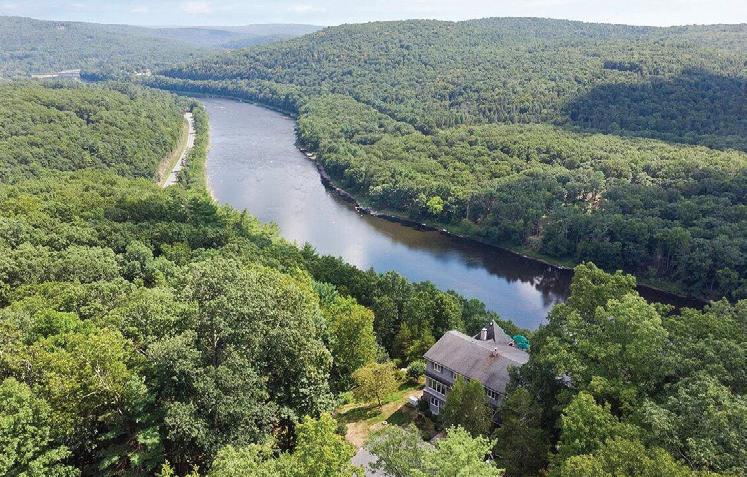 AMAZING VIEWS, PRIVATE RETREAT: Perched on a bluff 300 feet above the Delaware River, this 5 bedroom 5.5 bath mountain house, built in 1952, returns to the market as a private residence after being fully renovated in 2004 to become an award winning Bed and Breakfast. The panoramic views of the Catskill and Pocono Mountain ranges and the winding Delaware River creates breathtaking vistas from the multi-level decks and stone patios surrounding this stunning home. The landscaping highlights the natural beauty of this 60-acre parcel, complete with dramatic rock outcroppings and threaded with hiking trails to experience the unspoiled forest. The captivating setting of this very private and secluded sanctuary is only 90 minutes from NYC.
