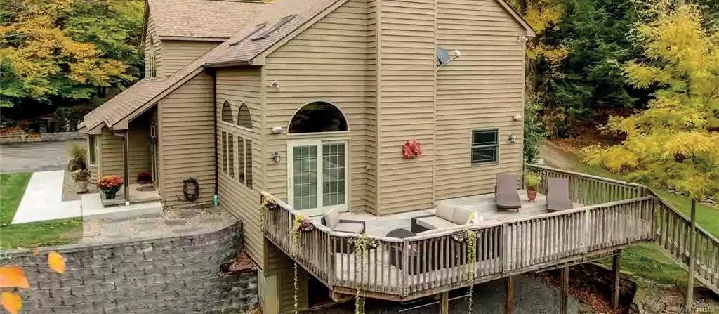 Private 4000+ sq ft custom built homestead on 5 acres, nestled amongst the woods. Stunning interior w/ soaring ceilings, skylights & bright open floor plan. Living Room featuring a wood burning fireplace to enjoy on those cozy nights. Additional Family room w/ gas fireplace & wet bar. Spacious Master suite with walk-in closet & custom walk-in shower. Separate In-law quarters or your own private on suite with a kitchen, living room, bedroom & full bath w/ laundry hookups. Multi decks outside for entertaining, BBQing or sitting by the fire. Close to parks, Holand Country Club for golfing, Kissing Bridge for Skiing & Snowmobile trail system nearby. Close to historic Village of East Aurora. A peaceful and tranquil property, with every amenity and update you would want. A DREAM HOME!