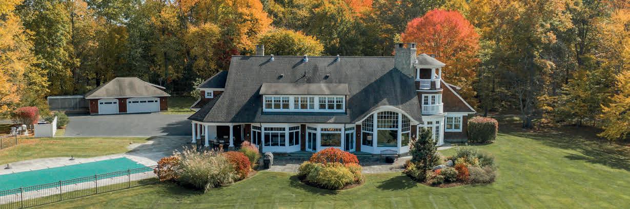 Absolutely private 108-acre estate, superbly located just 90 minutes from Metro NY. A relaxing getaway, this 8000 SF custom built home provides a rare opportunity to enjoy all that the Hudson Valley has to offer. The Craftsman-style home is a true gem, sited to take full advantage of the sweeping panoramic view of the Shawangunk Ridge, with big sky all around. Enjoy long summer days at the in-ground heated gunite pool, with views from every vantage point including a covered eating area, expansive bluestone patio and screen porch. Cool fall and winter nights will find you cuddled up next to one of five woodburning fireplaces thoughtfully integrated throughout the house, or perhaps playing hockey on the one-acre pond. Entertaining is a joy with a substantial chef’s kitchen with two ovens, oversized workspace, Sub-Zero fridge, dual dishwashers, ice machine and more. The charming, generously proportioned dining room is perfect for large gatherings, as is the formal living room with fireplace. Looking for a place to spend cozy evenings, watching the incredible sunsets over the ridge? Step into the lovely family room with fireplace and expansive windows to let in the view, just steps from the kitchen. The mainfloor guest suite includes a mini-kitchen and private bath, and the distinctive library with custom wood walls and shelves calls you to read, think quietly or plan your future. The generous second-floor private primary bedroom suite includes a reading/sitting nook with Rumford fireplace, balcony and expansive view, huge walk-in closet and private bath. Four additional bedrooms, each with a comfy reading nook, are located on the second floor and provide ample room for family and guests. The 2000 sq ft finished basement is ready for nonstop fun. Whether it’s gaming, watching films, crafting or just pure play, you won’t want to leave. If it’s the outdoors that call to you, allow yourself to get lost in your very own paradise. Hike in the woods, fish or skate on the pond, or simply take in the beauty of the property. In addition to the attached threecar garage, the separate two-car garage is perfect for storing your outdoor equipment and toys. This property is conveniently located to all amenities such as Wildflower Farms Auberge Resort, Mohonk Preserve, the Samuel Dorsky Museum of Art, Wallkill View Farms and Mohonk Mountain House. With 108 acres, 6 bedrooms, 5 full baths, 2 half baths and 10,000 SF of total living space this is a true luxurious retreat in the heart of the Hudson Valley.