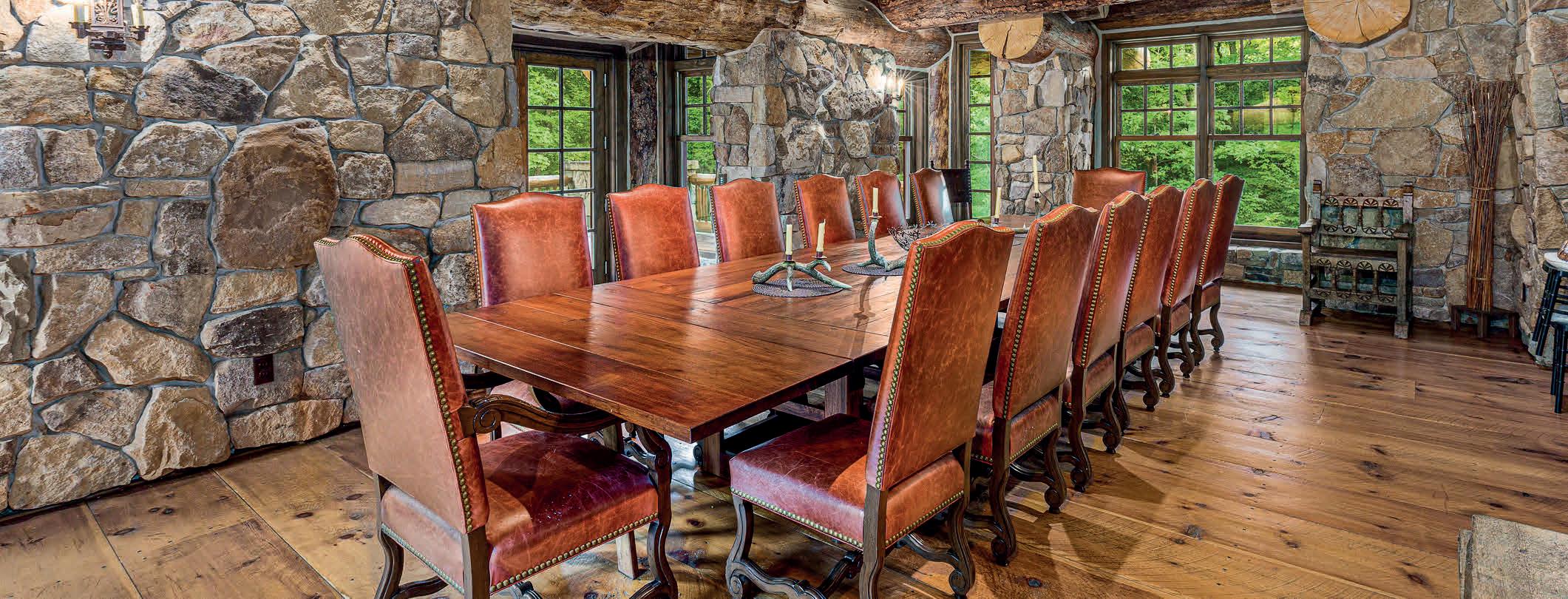This timeless, Colorado lodge-style home is centered on 75+ acres in the heart of Millbrook. The 11,500 sq ft home is constructed of standing dead timber from the west, measuring up to 41” in diameter, and stone from Pennsylvania. The open floorplan lends itself to grand entertaining while offering niche areas to cozy-up. A dramatic great room features a vaulted 32’ ceiling and a mammoth fireplace that one can standup in. The chef’s kitchen, pub, den and chess room add to the entertaining ambiance. A 34’ x 17’ formal dining room can accommodate 30. There are five bedrooms suites, which all open to their own private, covered porches. The lower level features a game room, office, recording studio and indoor shooting range. Outdoors is a 2,700 sq ft deck with fireplace and hot tub. Also included is a barn and three ancillary residences. A rare opportunity to own the most unique property on the Millbrook market - perfect for the sportsman or anyone who entertains.