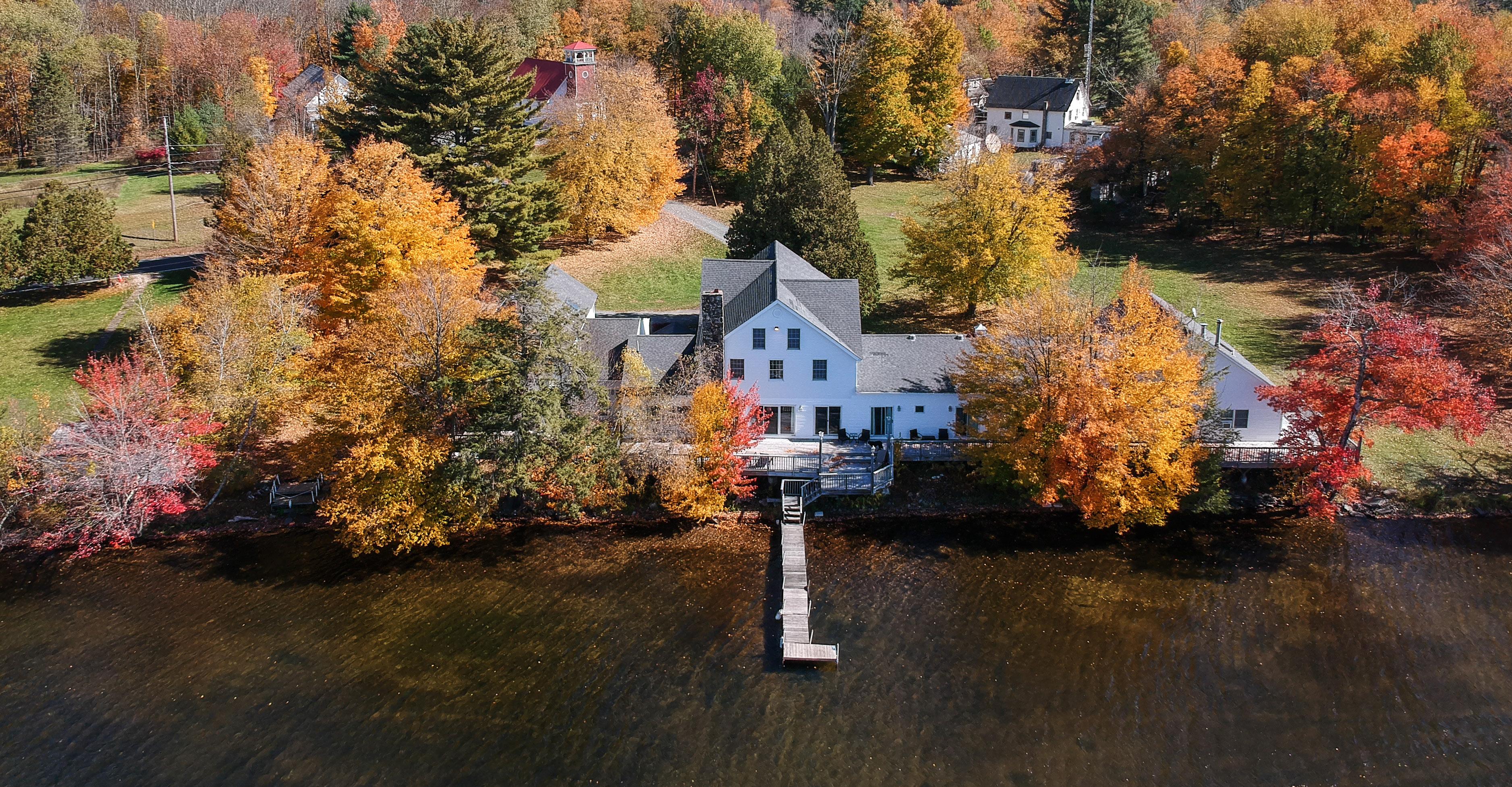 Jennifer Grimes NYS LICENSED BROKER/OWNER 845.985.5116 jennifer@countryhouserealty.com countryhouserealty.com 14 BEDS | 10.5+ BATHS | 7,200 SQFT | $3,250,000. Rare opportunity to create a generational lakefront vacation home on White Lake in The Catskills. This 14BR home has a generous 2+ acres of open lawns, dotted with mature trees, set back from the road, just a 5 min walk to waterfront dining and live music in Kauneonga Lake. Currently shared by extended family, the cavernous Great Room, which includes a kitchen well up to the task of cooking for 28+, is flooded with light from 3 large sliding doors that open onto the deck overlooking the water. Even when not in use, the fireplace is a pleasing focal point, and the TV is tastefully tucked inside custom cabinetry. A second kitchen in the attached 3BR Cottage creates opportunities for privacy among group stays. There is an additional approx. 1, 000 square feet on 2nd and 3rd floors that is no longer in use, but holds potential. This property has been a successful vacation rental for years, and the grounds are ideal for hosting events. Please inquire for more detail. KAUNEONGA LAKE, NY 12749 67 Horseshoe Lake Road