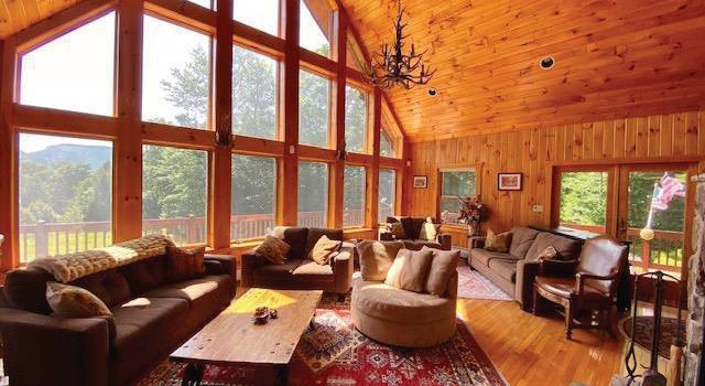 This meticulously maintained home is sited amongst mature trees, a sweeping lawn and a 360-degree mountain view! The love & respect that has gone into this home is apparent, making this property truly one of a kind! A freshly paved driveway brings you to your private deck with convenient access to the kitchen. Inside you are greeted by cathedral ceilings, hardwood oak flooring, and Andresen windows allowing in plenty of natural light. The living room is accented by a floor-to-ceiling brick fireplace, converted to a high efficiency pellet stove. Off living room is a sunny porch, a perfect spot to grill and relax or just bask in the scenery. A custom spiral staircase brings you upstairs to a large open loft. The downstairs walkout basement is partially finished, ready for your finishing touches. Includes a detached 1300 sf workshop with