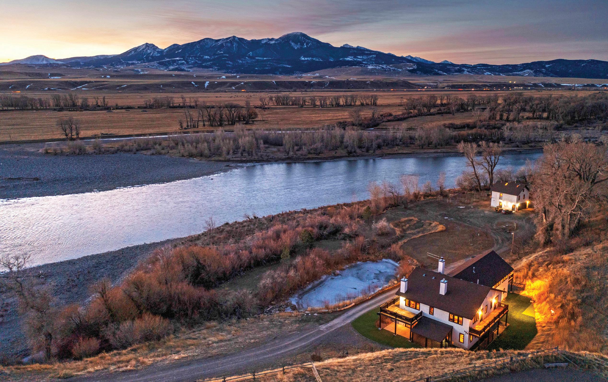 Rare Yellowstone River home with guest house and equestrian facilities on 12± acres with 1,150 ft of accessible river frontage in Paradise Valley, Montana.