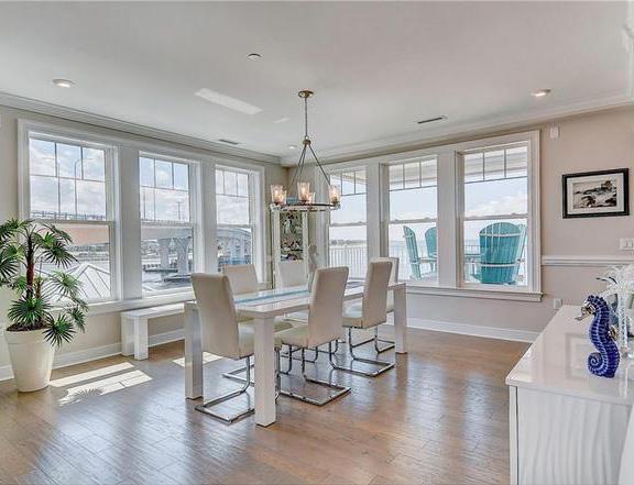 From Dividing Creek to the Chesapeake Bay, Waters Edge is perhaps one of the most fabulous opportunities in recent history for a serious boater who wants to moor their yacht at a 305' dock in 9' deep water, just steps from an exquisite 4,500+/- SF home with five spacious bedrooms, each with a private bath, and an attached two-car garage. A private boat basin waterfront amenity offers a kayak dock, two jet ski lifts, and a boat lift for a 22'+/- power boat.