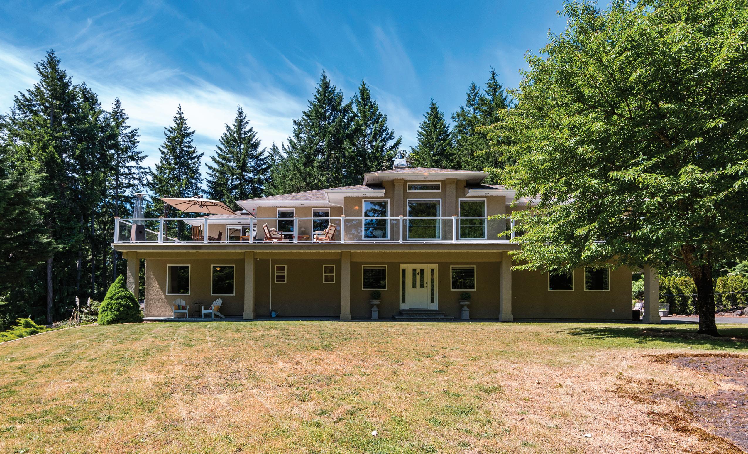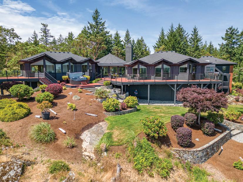 The ultimate private oasis - welcome to Excelsior Crest! You will be in awe as you drive up the Arbutus lined driveway to your beautiful executive home set to provide vast Southerly views of Victoria, Strait of Juan de Fuca & The Olympic Mountains! Your private estate on ten natural acres has professionally landscaped gardens surrounding the 6256sqft 5 Bed, 5 bath recently renovated home. Dramatic entry rotunda has 23ft ceilings & unique spiral staircase! Showcasing garage space for 7 vehicles (4 spaces within the over-height garages designed for large trailers & offers potential for car lifts), home theatre, a massive open concept kitchen / living area with feature woodburning fireplace is ideal for entertaining, is bright & full of natural light that lead to huge outdoor patio & deck spaces. Custom bamboo cabinets accent the beautiful kitchen with two islands. Primary bedroom is a refuge with private deck, access to hot tub & his & her walk-in closets. Spectacular Ensuite with huge walk-in shower & and a soaker tub that overlooks an Arbutus grove! Separate in-law suite is above one of the garages and connected to the main home by an enclosed breezeway. Emergency Generator onsite kicks in when electricity fails and runs the entire home. Lower floor offers an ideal “Teen Zone” with 2 beds, gym, & den. Location feels like you are miles away yet you are down the road from Broadmead Village, Prospect Lake & Elk/Beaver lakes & 15 minutes to Victoria!