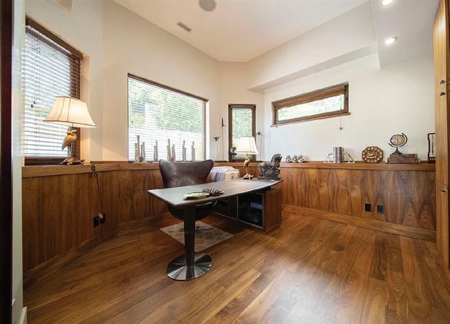 With a level entry, ensuite bedroom, separate office, powder room, laundry, and garage access, the main floor lends itself to the ease of one-level living. Upstairs are an additional three bedrooms and two baths, and the large flex room can serve as a fifth bedroom, children’s playroom, or home gym, making this home perfect for the family.