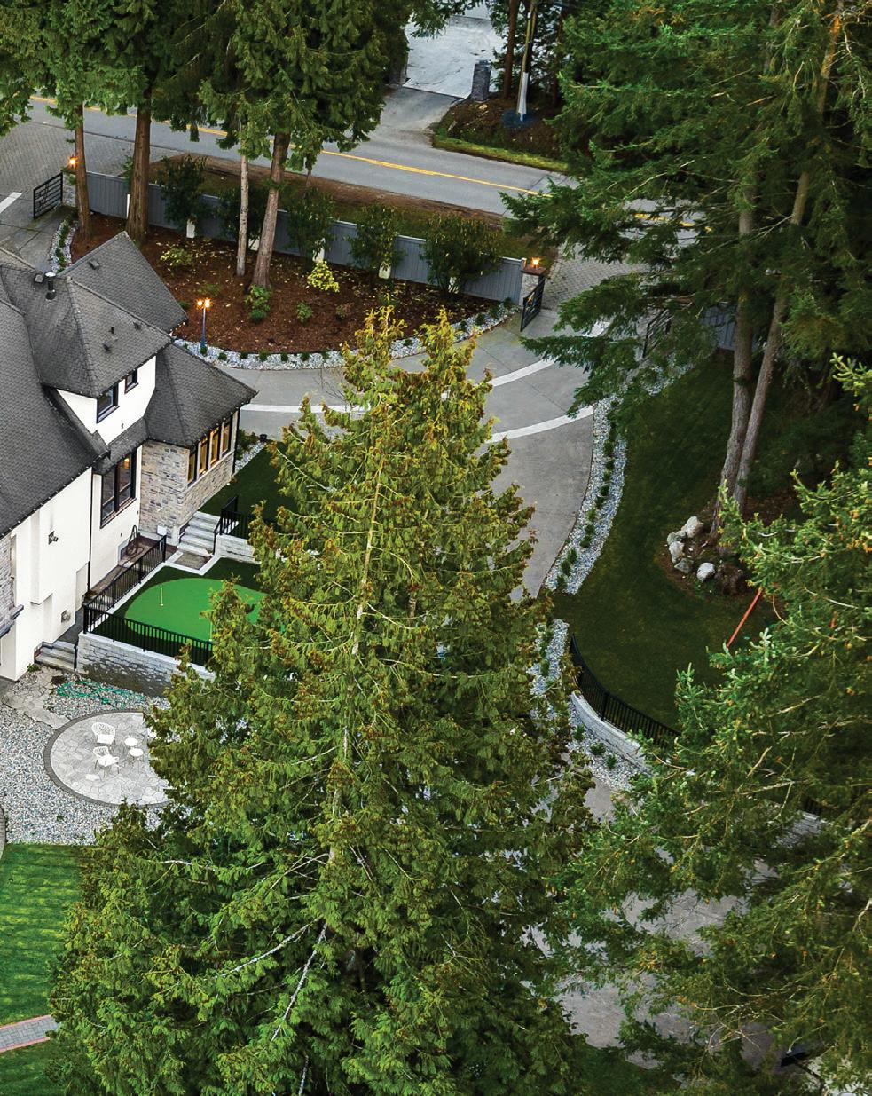 Situated on a private 1.2+ acre property, this timeless residence offers luxurious appointments throughout. In addition to the primary home, a private guest house is nestled above the triple car garage, overlooking the manicured park-like grounds. This guest house offers a full kitchen with premium appliances, living room, and two bedrooms. Enter the grande foyer of the primary estate and discover the expansive formal living and dining halls, an executive office, gourmet kitchen, secondary prep kitchen, butler’s station, daily eating area, sensational great room featuring walls of glass with direct access to the outdoor fireside lounge and covered bbq station. Noteworthy: The residence features a spacious bedroom suite on the main level with private outdoor access. The upper level offers four expansive bedrooms, including the owner’s suite featuring a triple glass fireplace, a make-up vanity, separate his + her closets, and the spa ensuite with a luxurious soaker. The home is equipped with a cinema-style theatre room, a private gymnasium adjacent to the covered outdoor hot tub, an entertainment-scale bar with a pool table and recreational areas - all with walk out access on the lower level. Additional outdoor features: a golf green, a children’s playground, and multiple dining terraces.