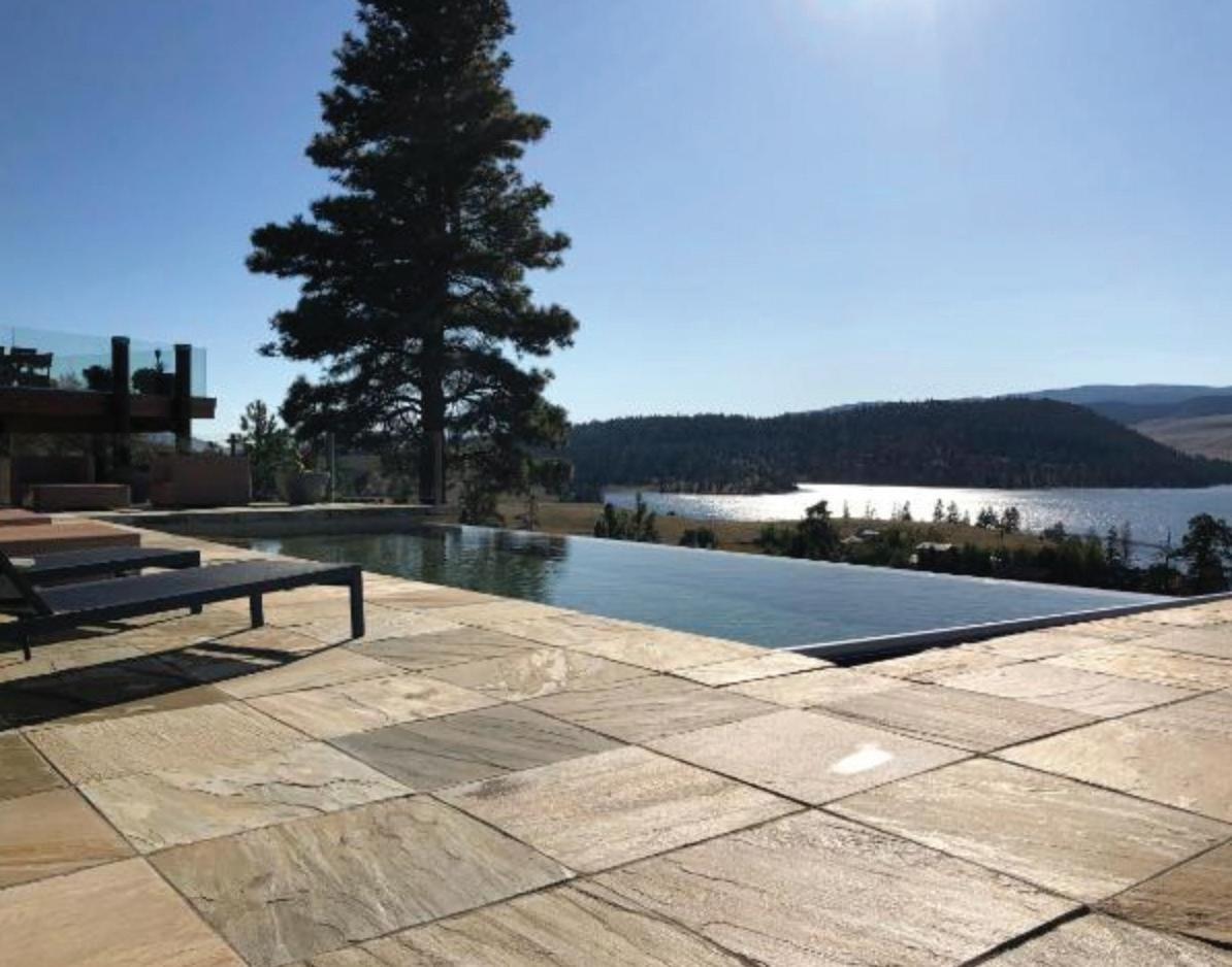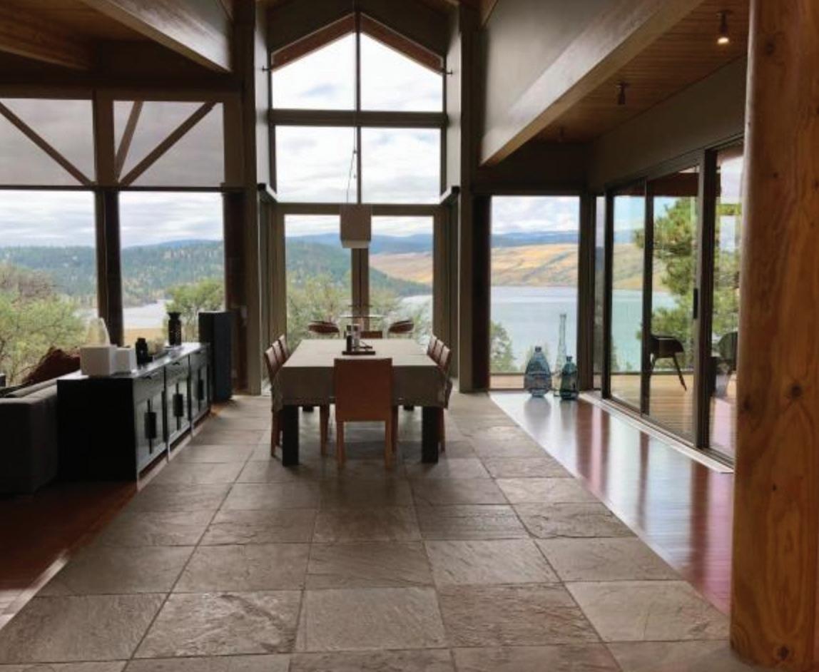 EXTRAVAGANT WATERFRONT RETREAT on renowned Stump Lake. Unobstructed lake views from this contemporary organic build featuring post & beam construction, geothermal heat, stacked rock walls, plus a live sod and zinc roof. Executive living area with a beautiful entertaining kitchen and view decks. Transition from your incredible infinity pool into a refreshing outdoor shower before entering the primary suite complete with fireplace open to adjoining sitting or office space. Warm earthy décor tones draw you into the unique architectural style in this 4075 sq ft home situated on approx. 10 acre property with two titles. 3 car garage, 27’x36’ barn, plus boat storage unit. Modern elegance settled amidst gently rolling hills of the Thompson Nicola and the shorelines of Stump Lake. Grow your passion for horseback riding, biking, and/or exploring the outdoors in this truly restful environment. All measuremts approx.