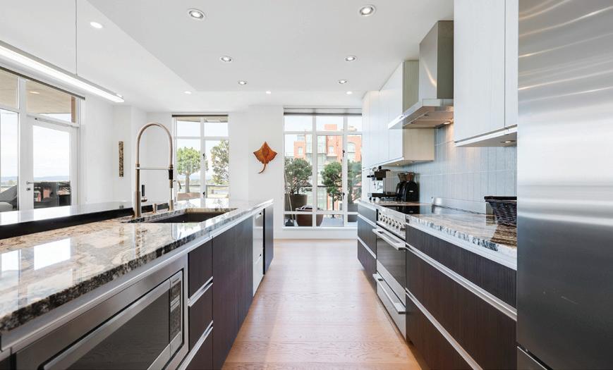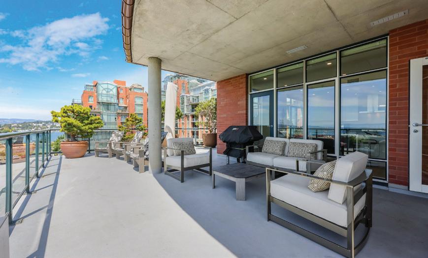 Indulge in opulence & luxury in this immaculate & captivating 3-bed, 3-bath condo with breathtaking ocean views. Bask in the sea breeze & sunshine on the expansive Southwest-facing, 786sqft wrap-around terrace. The open-concept main living space impresses with over-height windows that showcase stunning views of the ocean & mountains from the living room & kitchen. This suite features an impressive floor plan with over 2000sqft of living space, a gourmet kitchen with premium Fisher & Paykel stainless steel appliances, spa-inspired bathrooms, cozy gas fireplaces & A/C for added comfort. The spacious primary is an oasis in itself, offering a walk-through closet, a lavish 5-piece ensuite & fireplace. This residence combines elegance with comfort, making it an exquisite retreat that includes access to numerous luxury amenities, such as concierge services & fitness facilities. You are steps from Fisherman’s Wharf, the Dallas Rd waterfront trail & everything downtown Victoria has to offer!