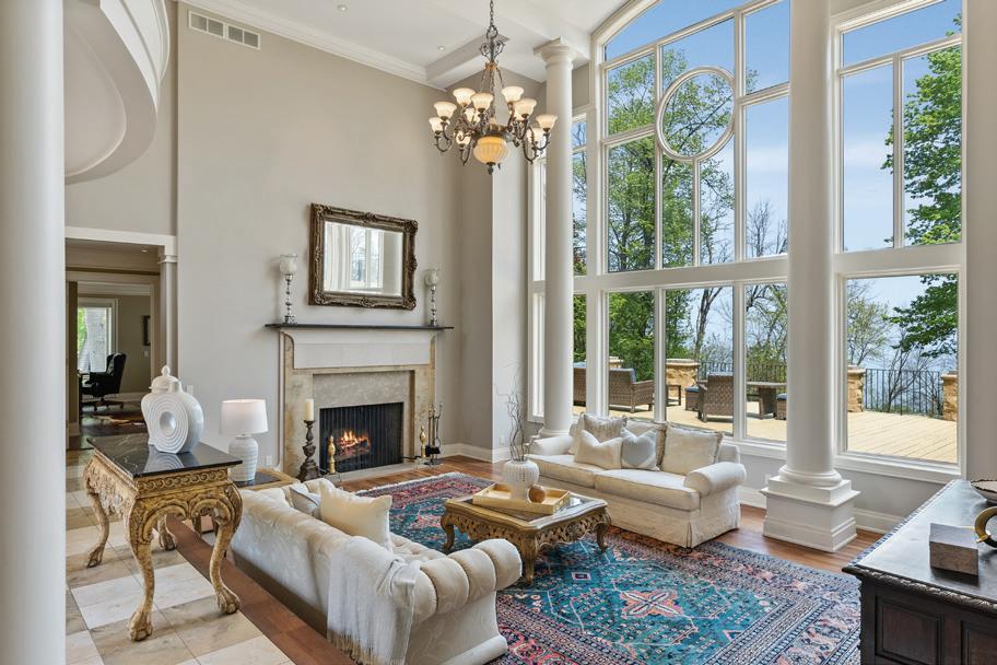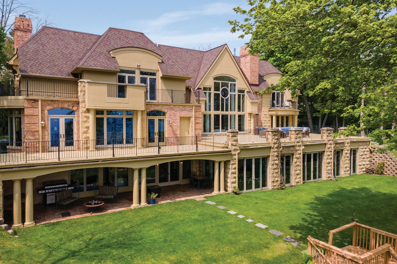 This stunning French Provincial Lakefront Estate sits on almost 2 acres with an unprecedented amount of land before the bluff. Enjoy breathtaking eastern exposure views of the 150 feet of water frontage from the recently refinished deck. Inside, the neoclassical style great room impresses with soaring ceilings. The chef’s kitchen has a mix of marble, limestone, and granite, along with Brazilian cherry floors. The lower level is perfect for entertaining and offers a walk-out patio, built-in bar and a media room. The primary suite features heated limestone floors, gas fireplace, and a private balcony. The estate is gated and offers its owners both seclusion and privacy. This truly extraordinary estate also includes a charming Spanish-style attached guest house.