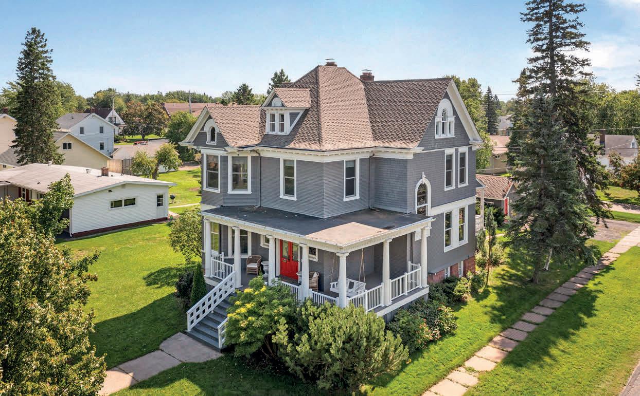 Wow...is all you can say as you walk up the stairs surrounded by enormous pillars to the wrap-around covered porch with such a beautiful beadboard ceiling and hanging porch swing! Then, as you turn around while standing on the front porch, you see the setting of all the greenspace of Gouge Park...from this point on you know this historic mansion is something special! It was originally built for the first mayor of the city of Superior, Charles Starkweather, and no expense was spared! Opening the double front doors and seeing the combination of tall ceilings, inlaid hardwood floors, carved wood and coffered ceilings, and ornate work everywhere you look from the workmanship of days gone by. Combine the spectacular historic