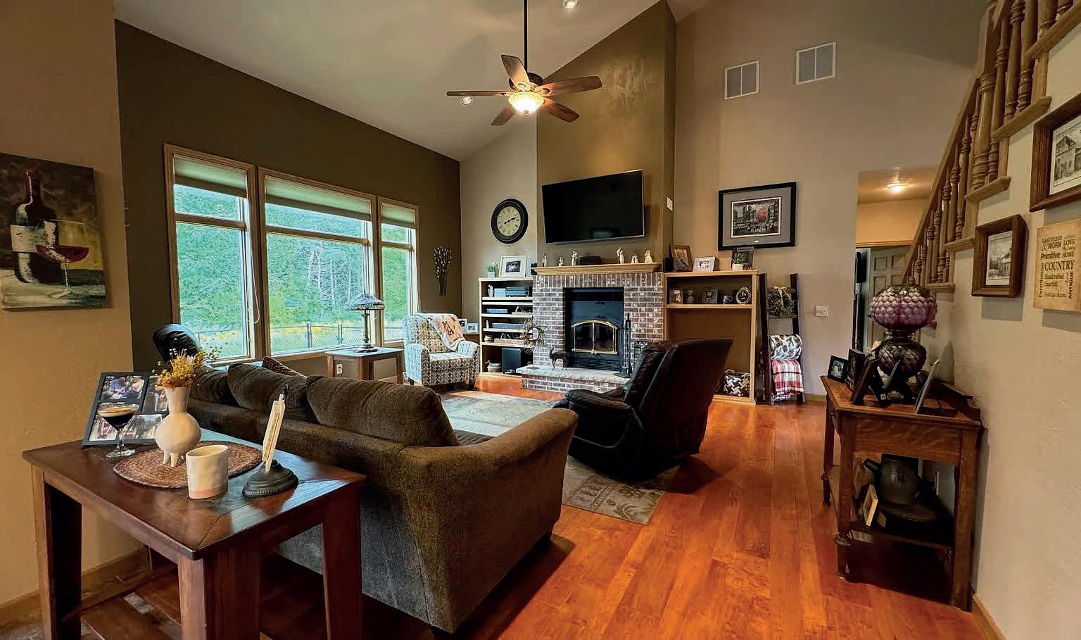 Discover this beautifully, one-of-a-kind home on 1.84 acres, with breathtaking views, just minutes from town. The property features ample storage, including a two-car attached garage with a loft and an additional detached storage building. Inside, the finished basement is perfect for entertaining, complete with a stunning bar, bonus room, and full bath. The main floor offers convenient laundry room, a cozy atmosphere with fireplace and a primary bedroom. The custom cabinetry and exposed beams add to the home’s charm. Upstairs you’ll find two generously sized bedrooms, plenty of storage, and versatile spaces deal for an office or kid’s room. This home has it all!
