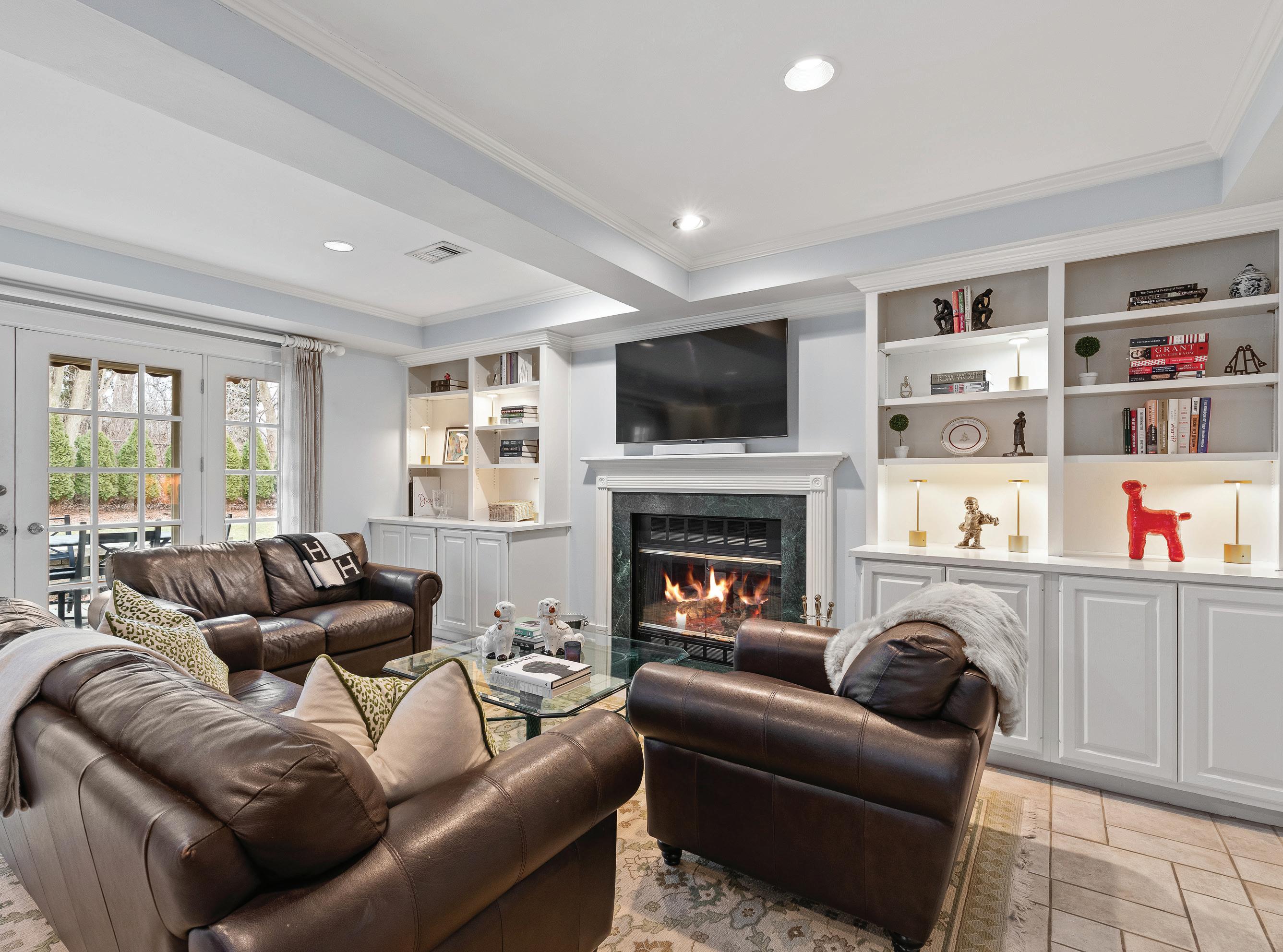 Enter the secluded winding drive, to discover a unique resort set w/in a serene landscape. The custom-designed residence merges classic architectural elements w/quality rustic details. The home reflects meticulous care, updates, & warmth from the impressive hand-hewn beams, soaring ceilings, custom millwork, 5 fireplaces, slate & hwfs. The primary suite leads to an idyllic lanai overlooking the pool. A luxurious o ce has custom bookshelves, & inlaid flr- an ideal work-from-home environment. The LL w/an expansive bar, billiards, & lounge w/ a fieldstone fp, connects to a stunning saltwater pool & hot tub- enhanced by a striking stone waterfall! This exceptional home beautifully integrates the wonders of nature, making it an extraordinary venue for entertaining or enjoying its tranquility.